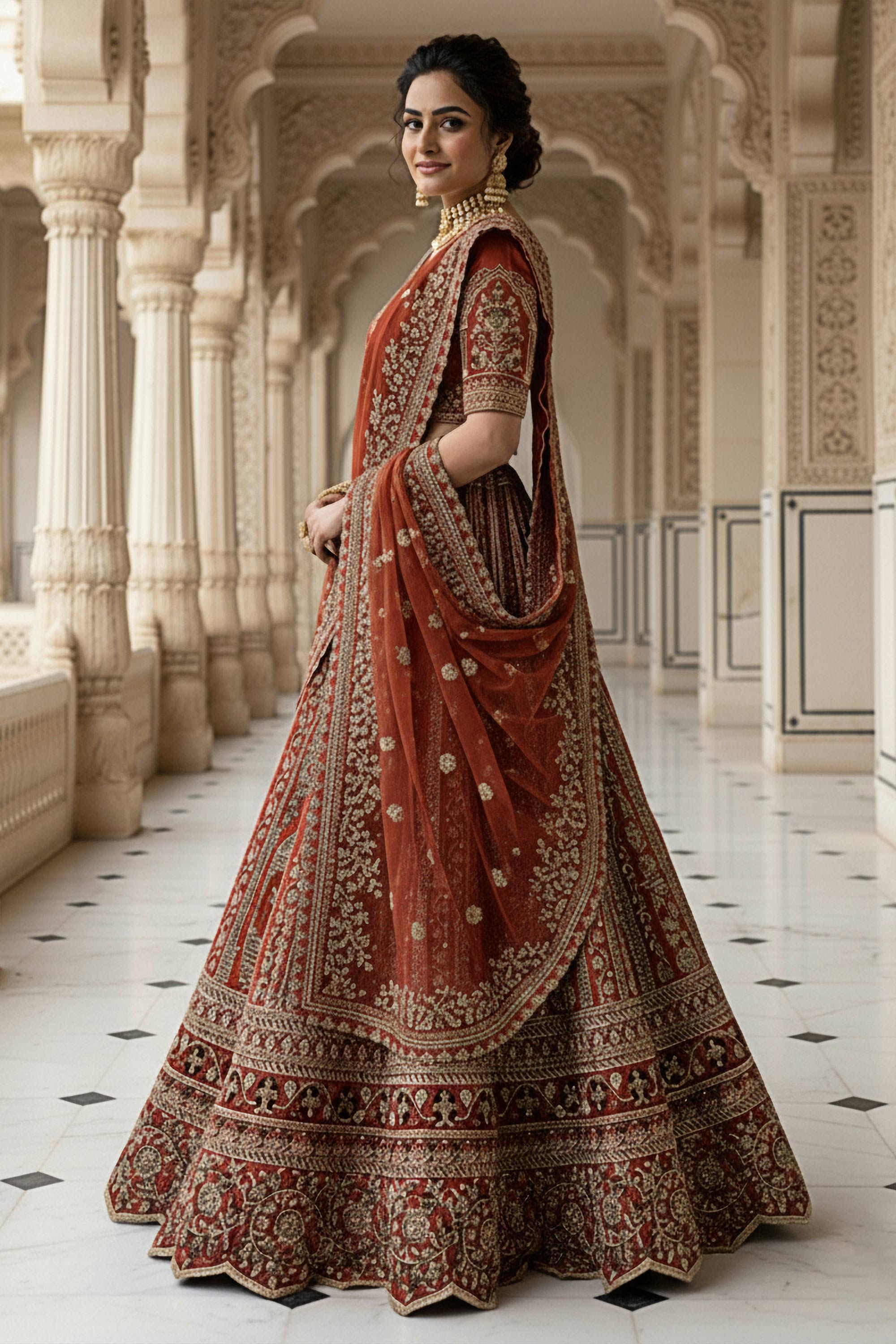 Celebrate love and tradition in this designer silk bridal lehenga choli. Featuring luxurious silk fabric and fine embroidery, this bridal ensemble is thoughtfully crafted for sophistication and elegance. The flattering cut and intricate design work together to provide a graceful, stunning look. Comfortable yet eye-catching, it perfectly complements the joy of a wedding day. The artistry of the embroidery enhances its overall charm, making it a standout outfit for brides who value beauty and tradition. Suitable for weddings, receptions, or special events, this outfit brings the perfect blend of classic style and modern comfort.