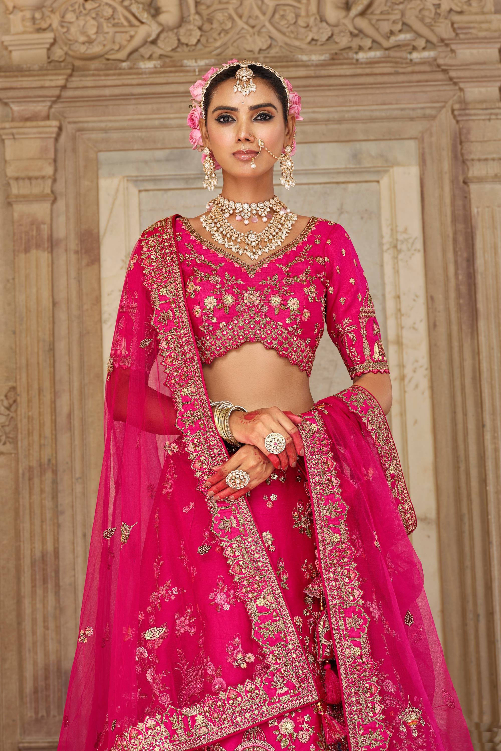 Add unmatched beauty to your wedding day attire with this Silk Bridal Lehenga Set and intricately designed heavy embroidered blouse. This traditional outfit redefines elegance, blending heritage artistry with modern sensibilities. The high-quality silk ensures durability and comfort, while the exquisite embroidery enhances its charm. This versatile piece works effortlessly for any bride aiming to leave a lasting impression. Its classic yet refined design is perfect for weddings, festive occasions, and family gatherings. Step out with confidence and celebrate your day in ultimate style.