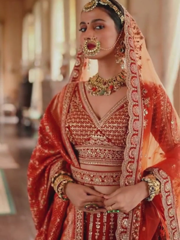 Graceful Heavy Embroidered Bridal Lehenga Choli In Silk Fabric is the ultimate blend of elegance and tradition for your big day. Made with premium-quality silk, this lehenga choli is beautifully adorned with intricate embroidery work, showcasing a sophisticated yet timeless design. The lightweight feel of the silk ensures comfort, making it perfect for hours of wear at weddings, receptions, or other festive events. This stunning bridal attire comes with a matching dupatta, adding charm and grace to your ensemble. Whether you're the bride or looking to dress up for a grand occasion, this piece is a must-have for making lasting memories.