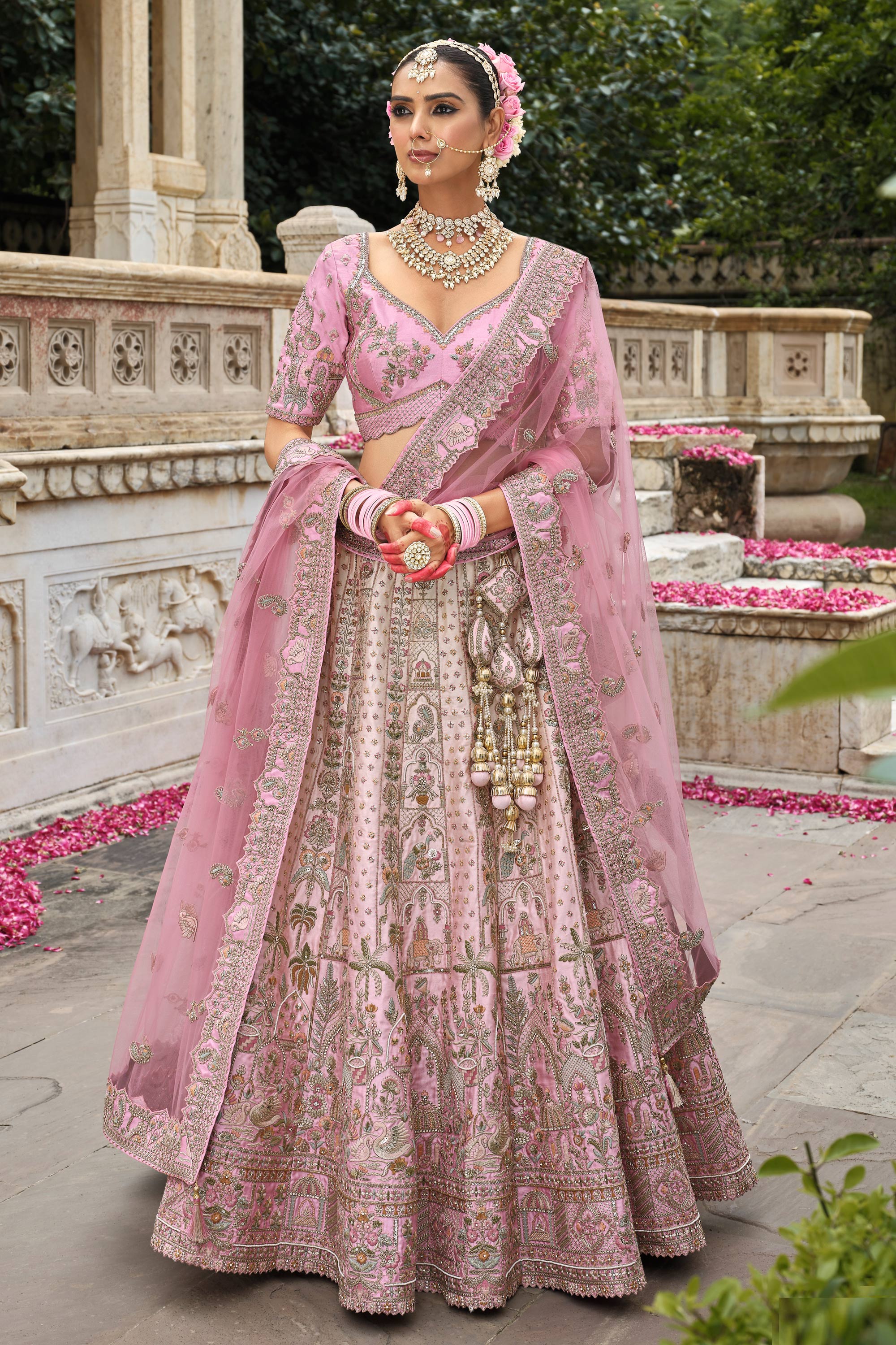 Silk Pink Bridal Lehenga Choli