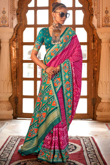 Beguiling Pink Color Art Silk Patola Printed Saree