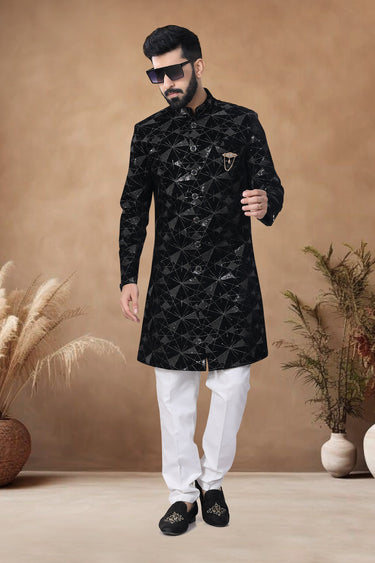 Velvet Black Wedding Wear Readymade Designer Men Indo Western