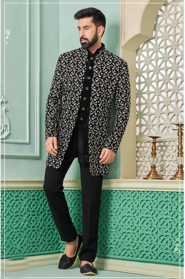 Velvet Fabric Beautiful Black Color Readymade Nawabi Style Indo Western