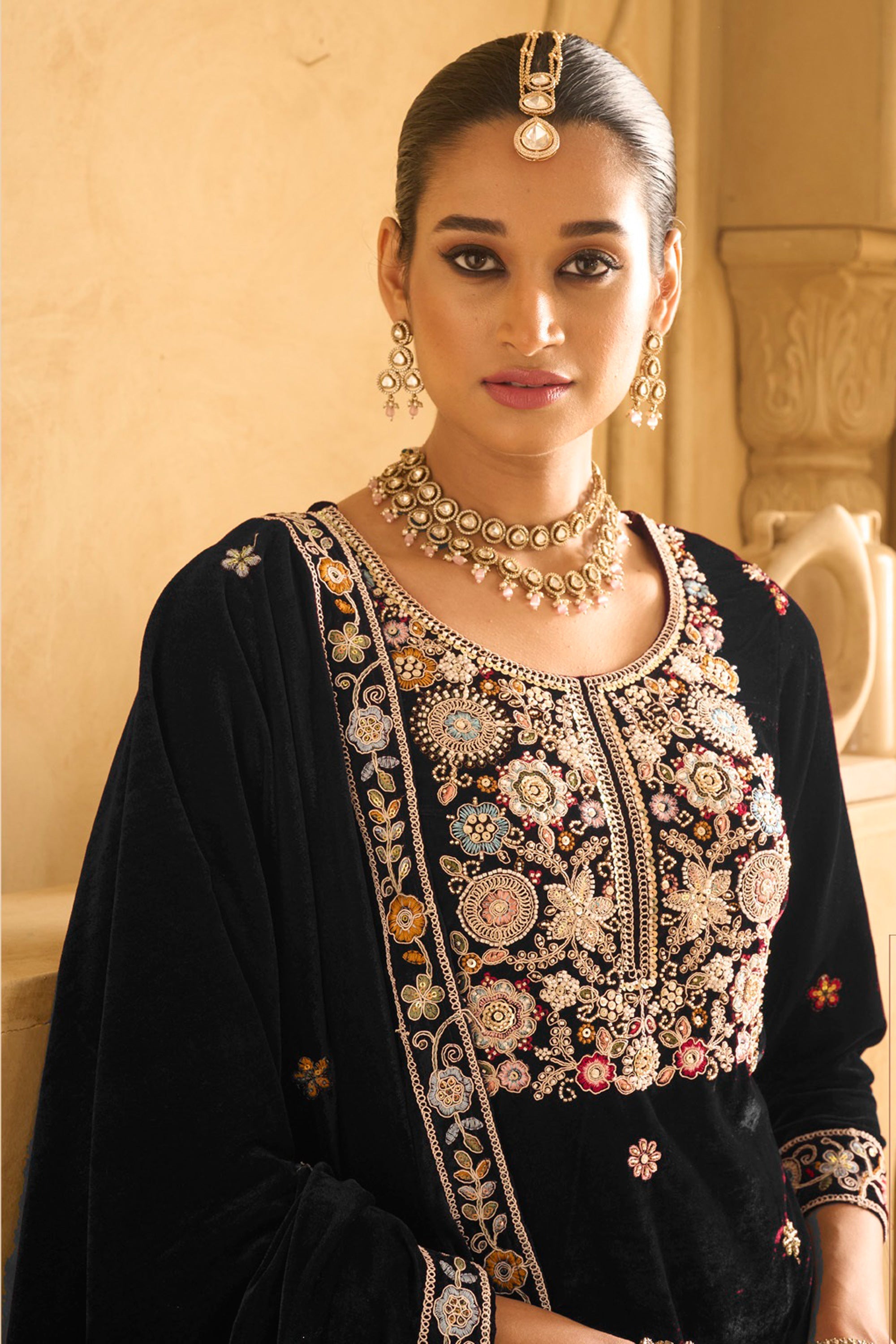 Make a stunning impression at your next Sangeet event with the Reach Color Embroidered Velvet Palazzo Salwar Suit. This elegant ensemble features exquisite embroidery on plush velvet, making it both sophisticated and stylish. The comfortable palazzo pants provide ease of movement, perfect for dancing the night away. Crafted with premium quality fabric, this suit offers both durability and luxurious feel. Whether you’re attending a family function or a festive celebration, this outfit ensures you look your best. Add a touch of glam to your wardrobe with this timeless piece that will leave everyone admiring your impeccable taste in fashion.
