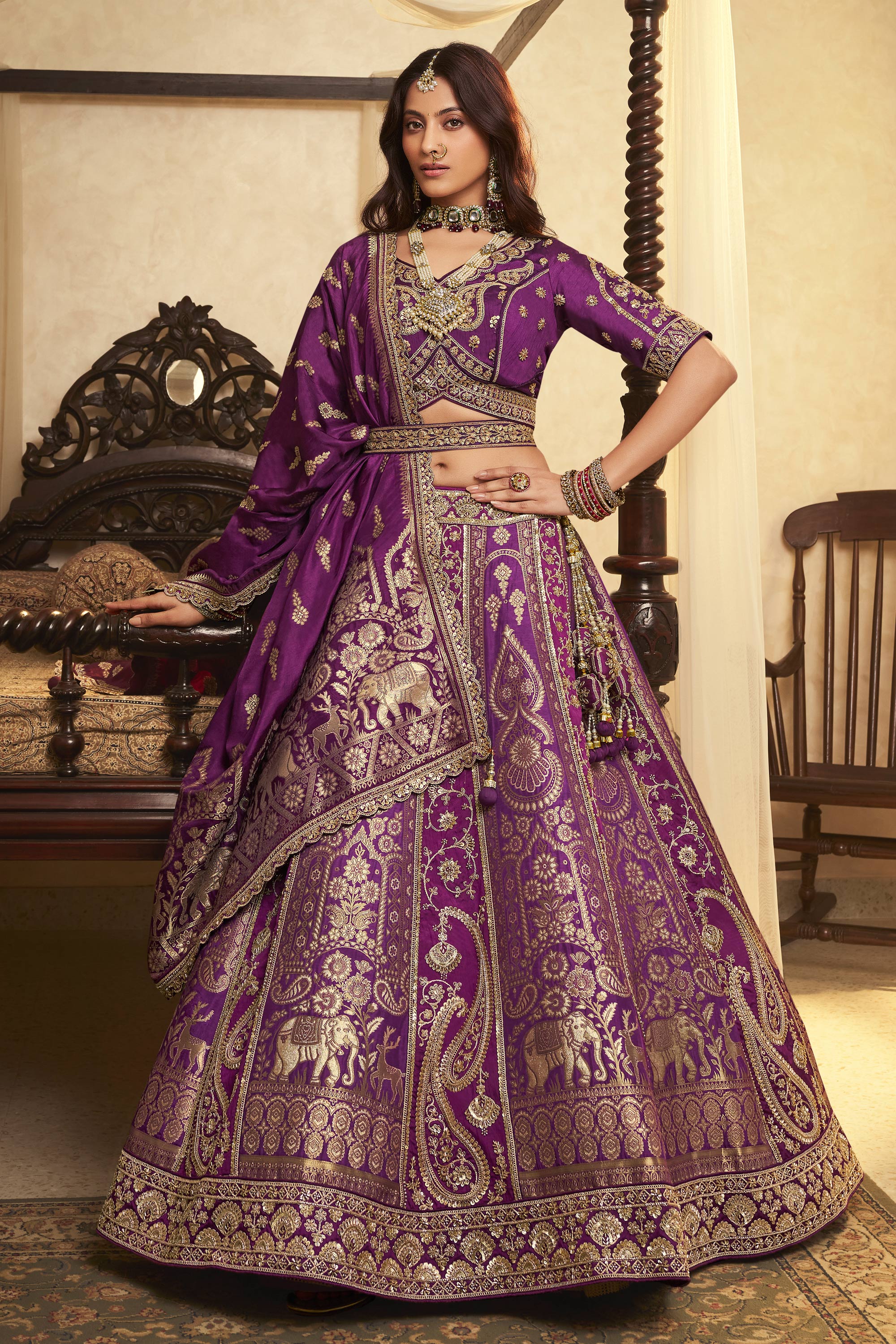 Beautiful Purple Banarasi Silk Wedding Lehenga With Designer Blouse