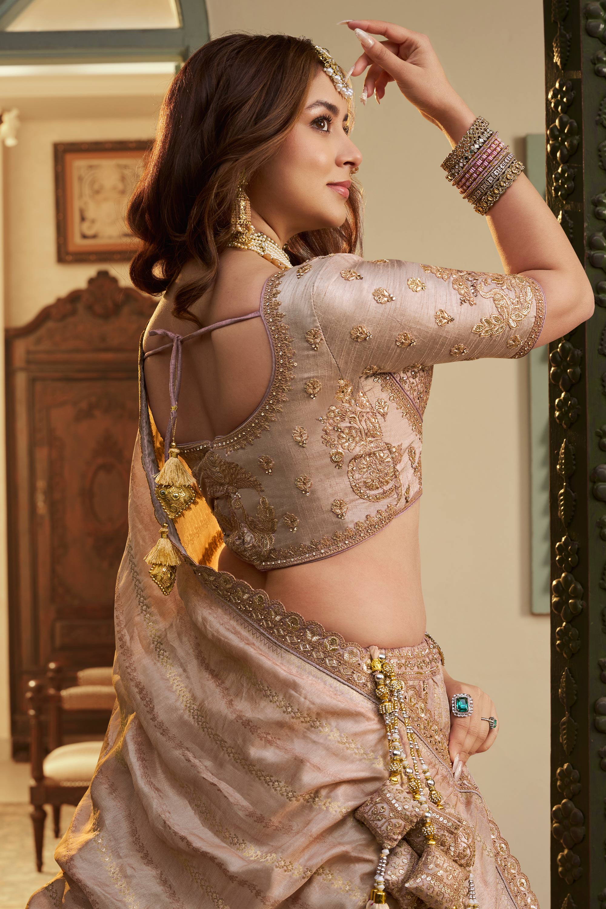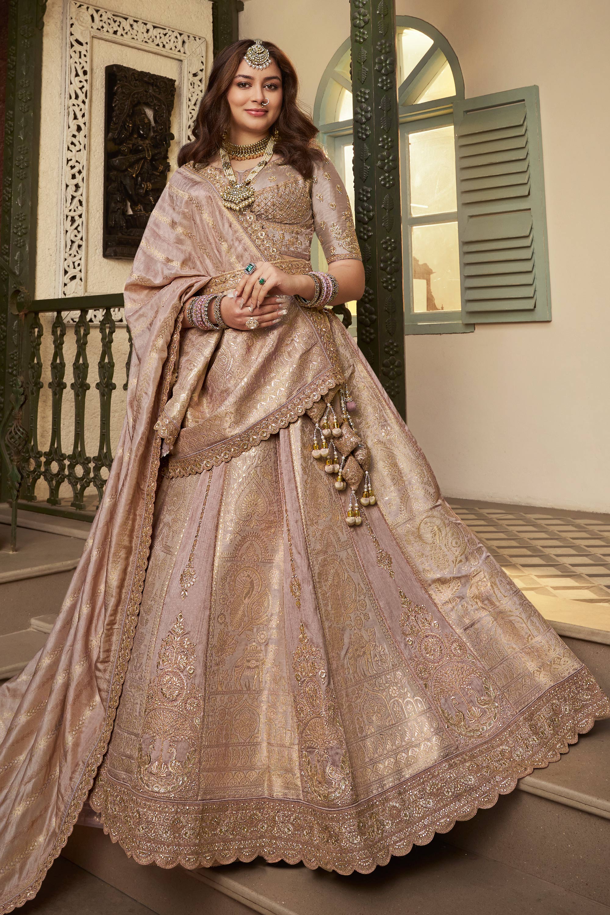 Lavender Banarasi Silk Weaving Work Lehenga Choli