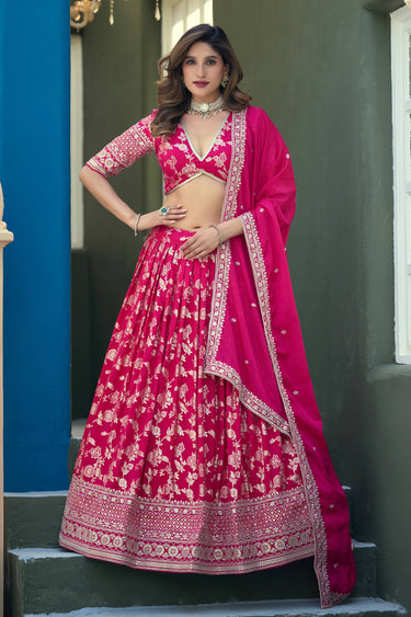 Rani Wedding Wear Jacquard Silk Weaving Work Lehenga Choli