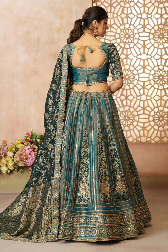 $89.00 AUD$178.00 AUD Original Price Save 50%/ Art Silk Embroidered Teal Wedding Wear Lehenga CholiSave 50%