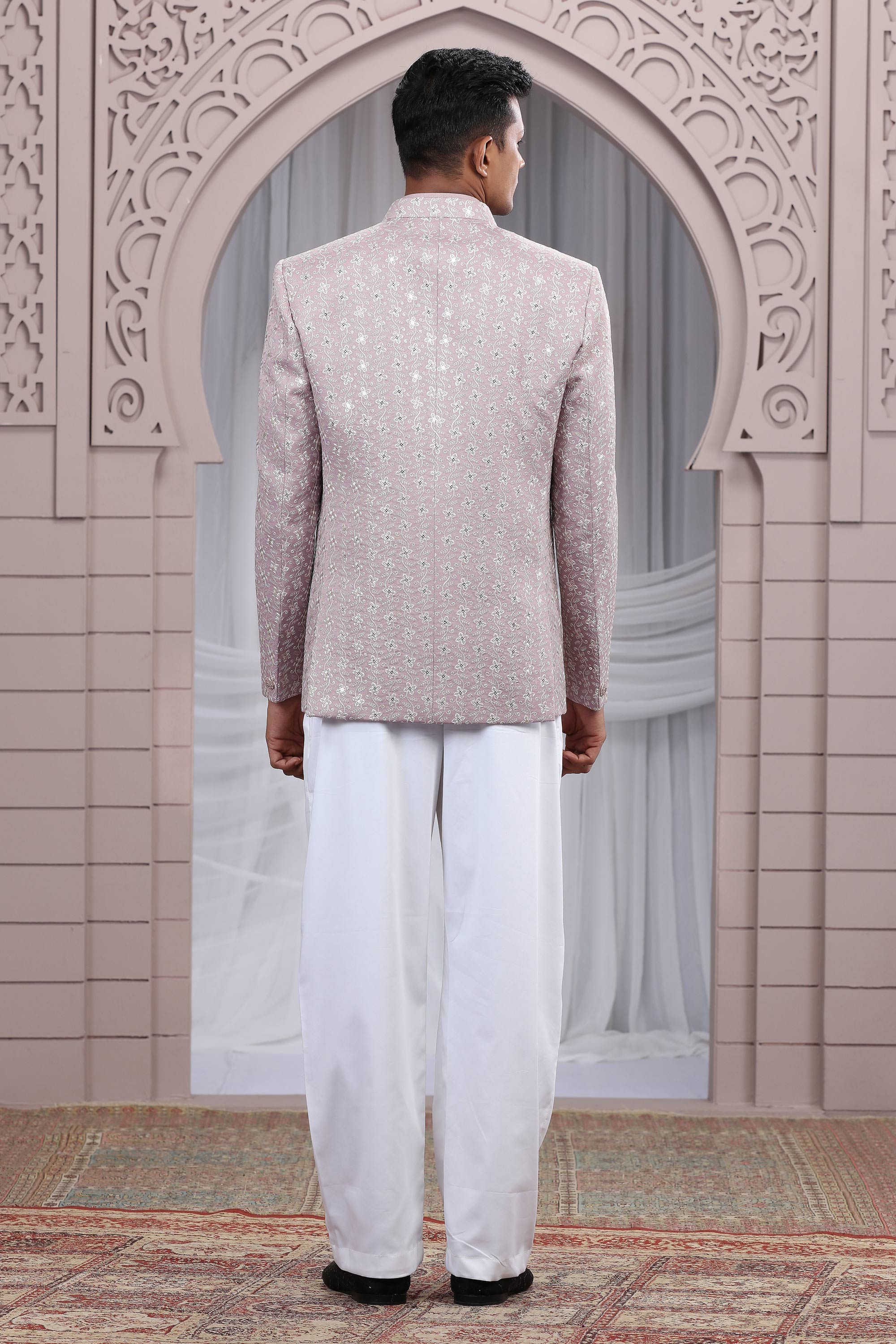 Art Silk Pink Sangeet Wear Readymade Lovely Indo Western Jodhpuri Suit For Men