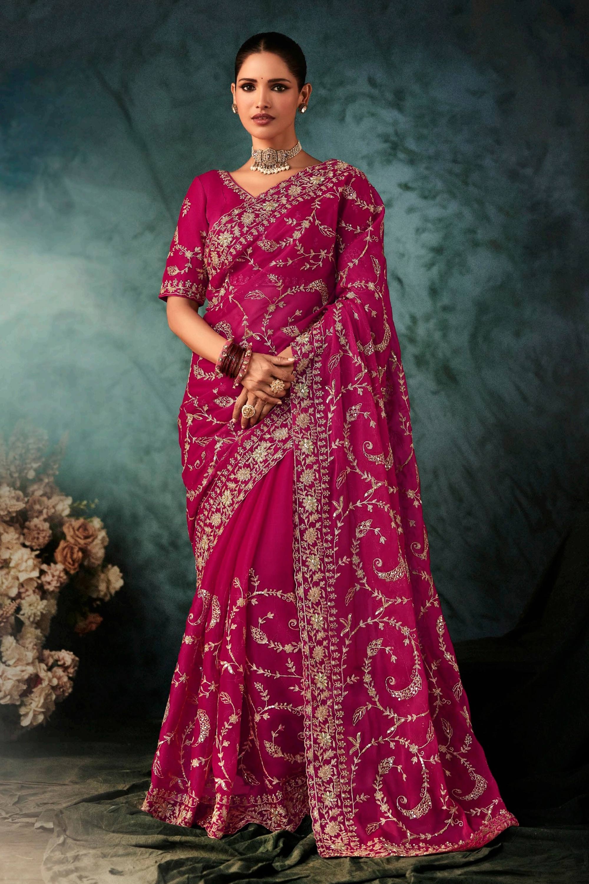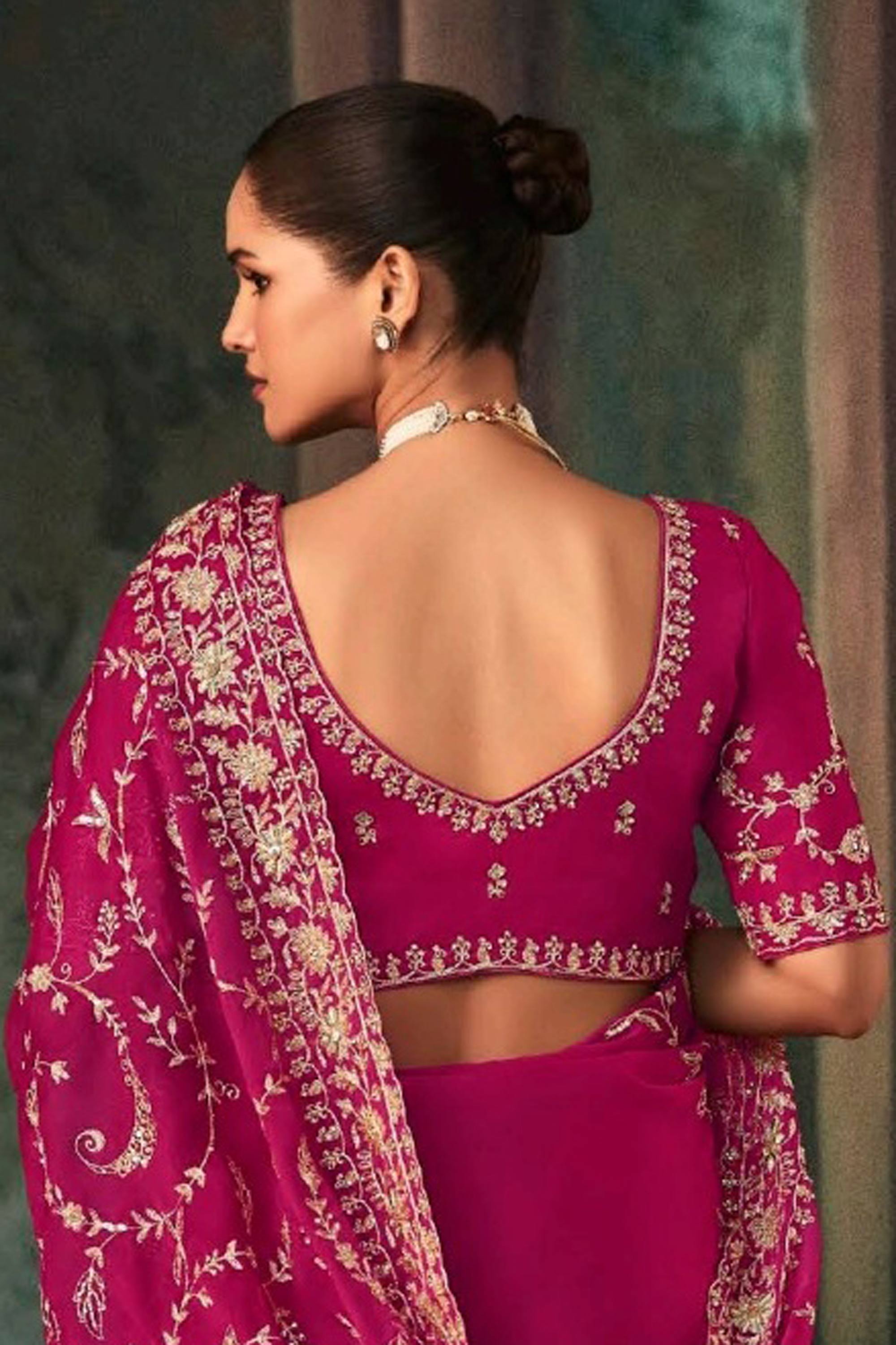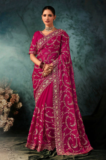 Magenta Wedding Wear Fancy Fabric Embroidered Saree