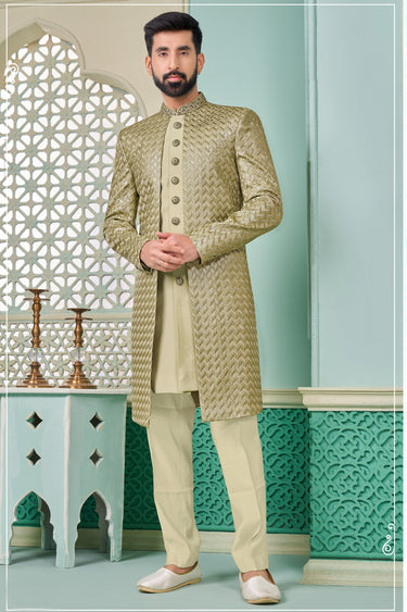 Green Banarasi Silk Graceful Readymade Nawabi Style Indo Western