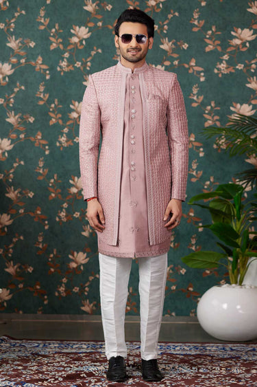 Pink Color Art Silk Fabric Magnificent 3 Piece Indo Western