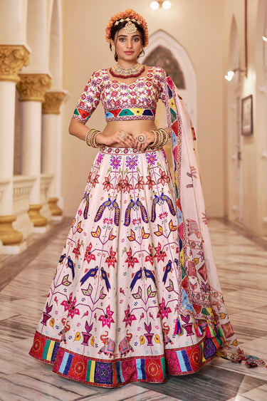 Deep Off White Art Silk Printed Hand Work Wedding Lehenga Choli