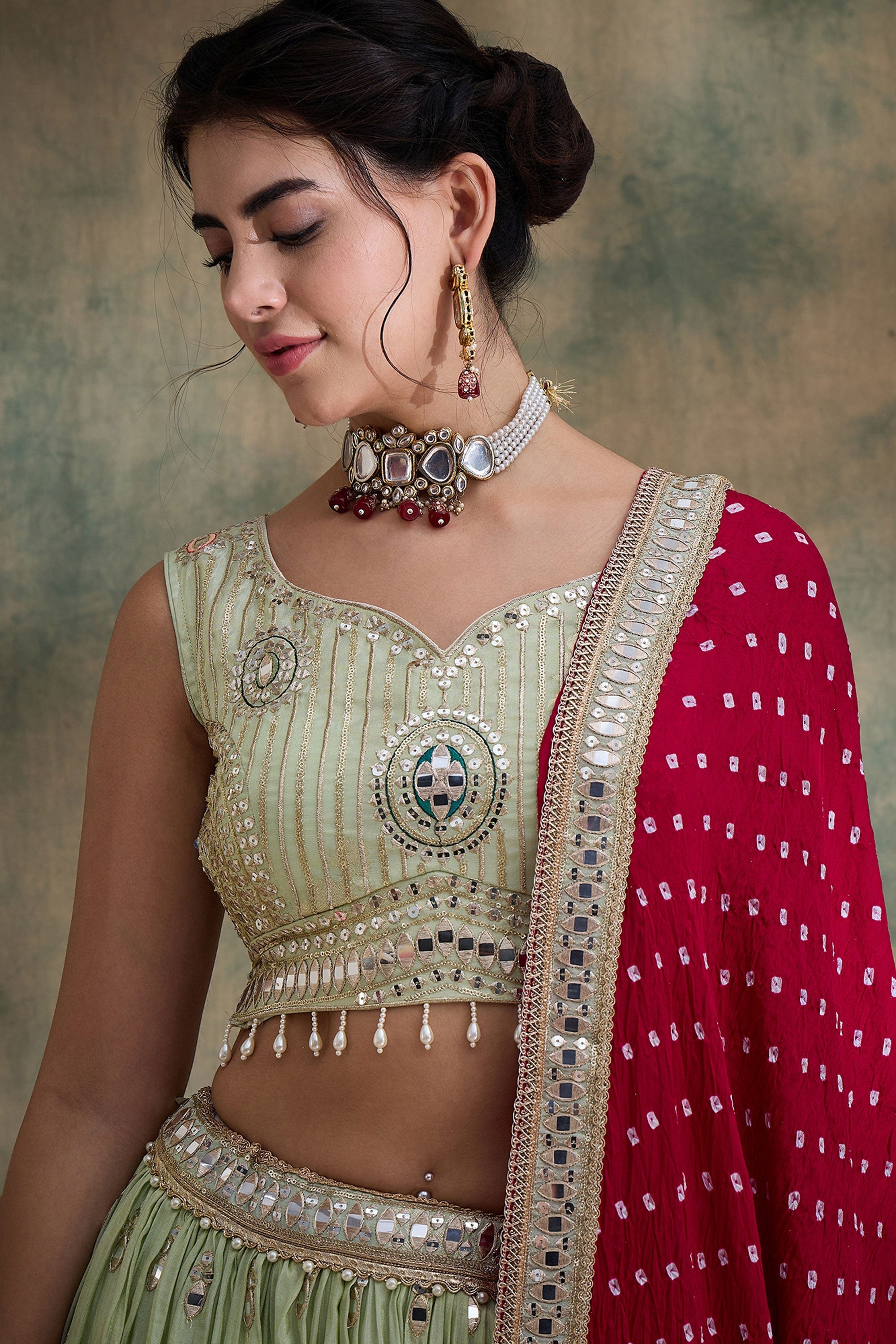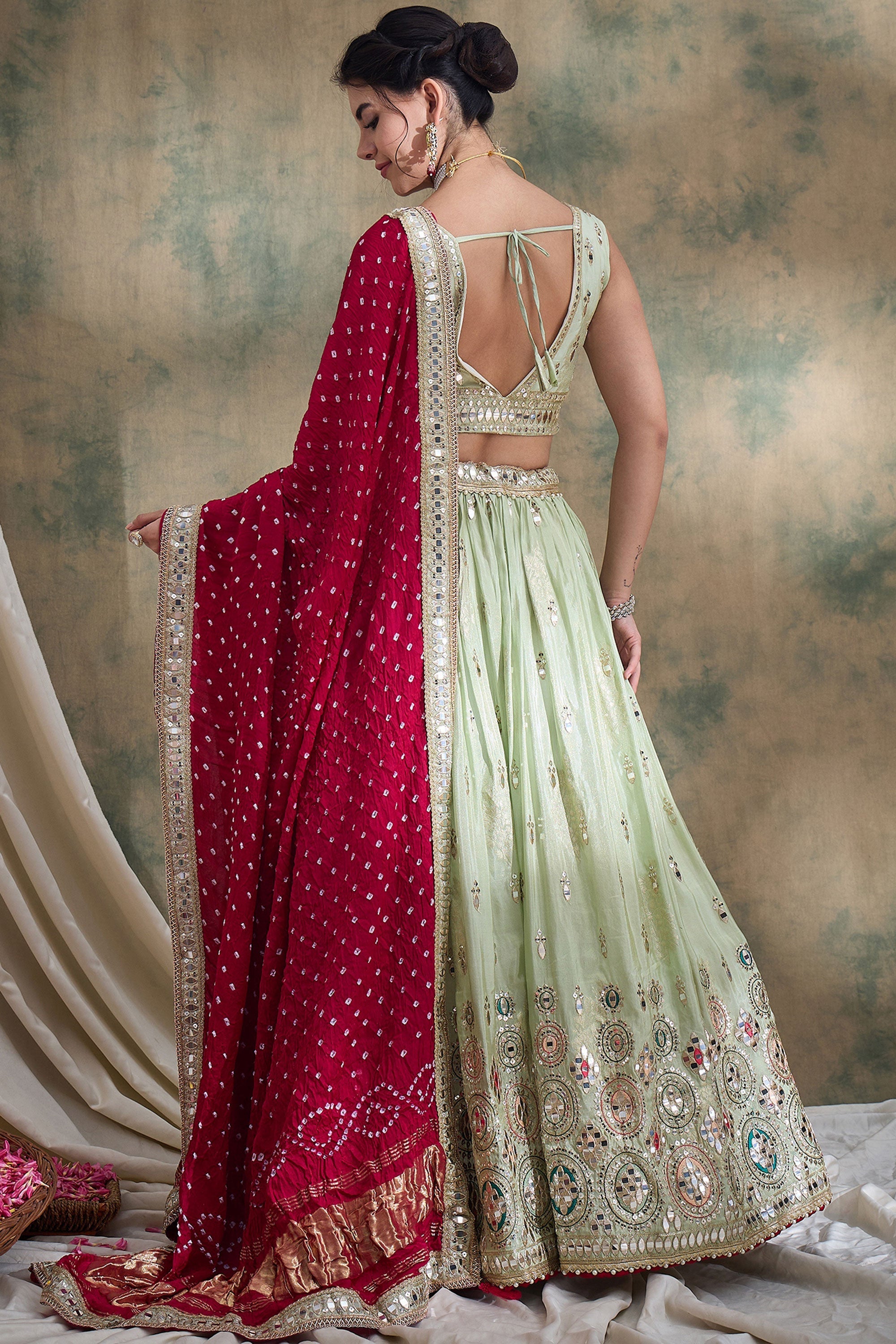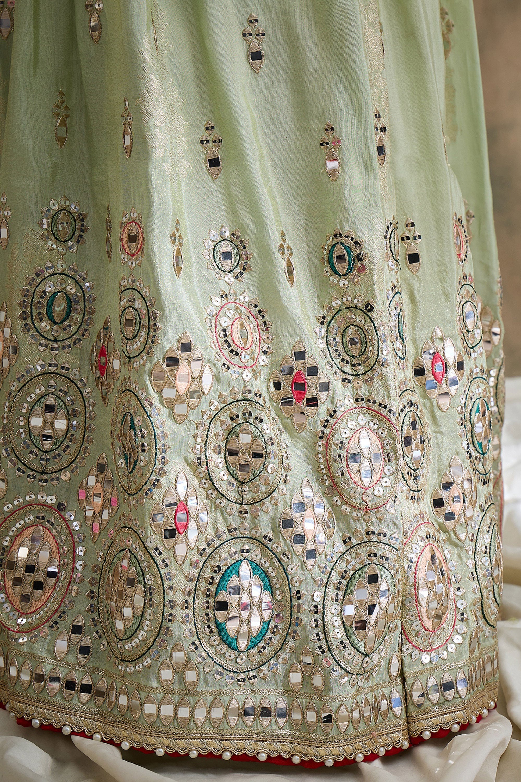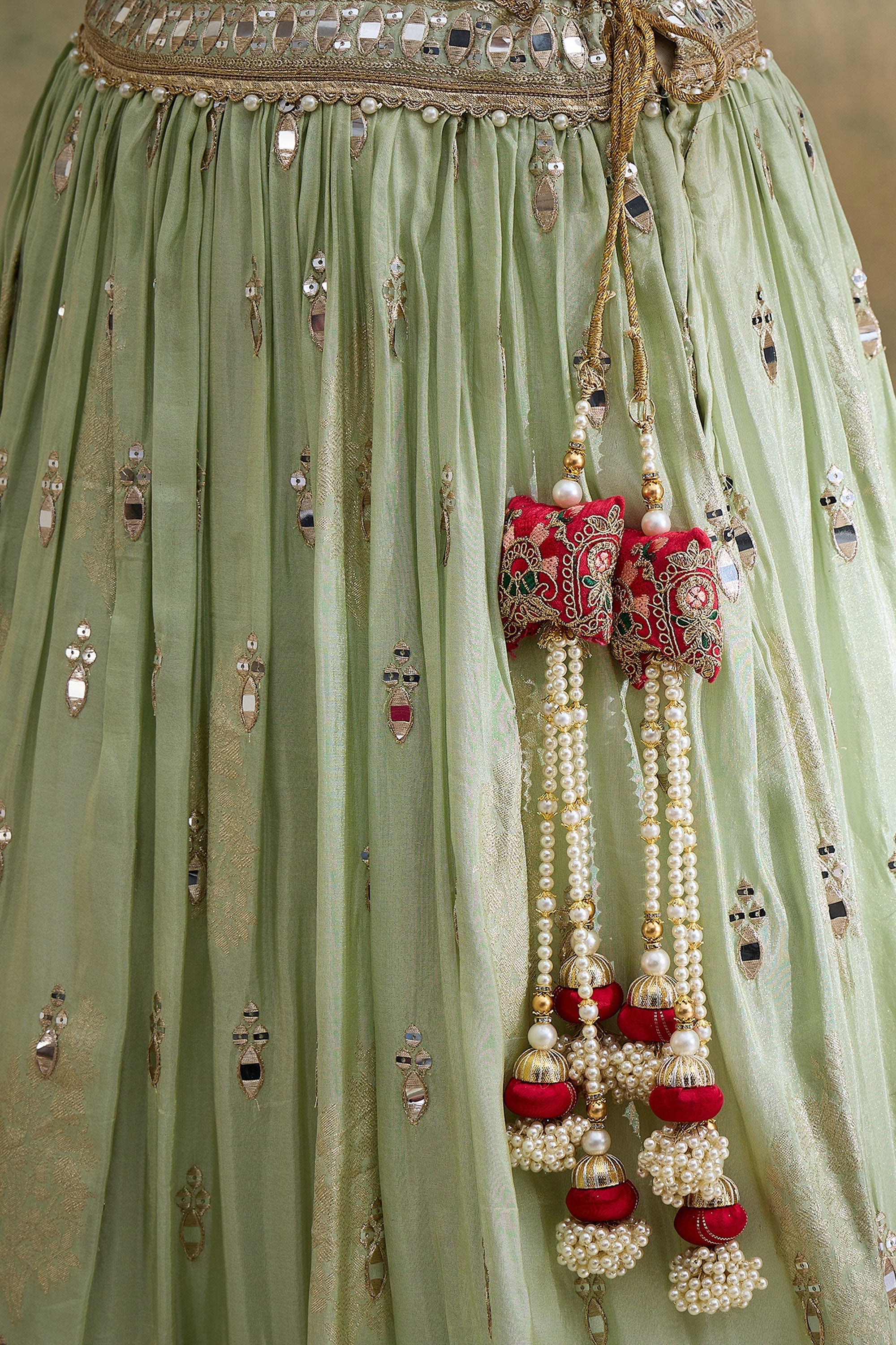 Glamour Embroidered Sea Green Viscose Tissue Heavy Lehenga Choli