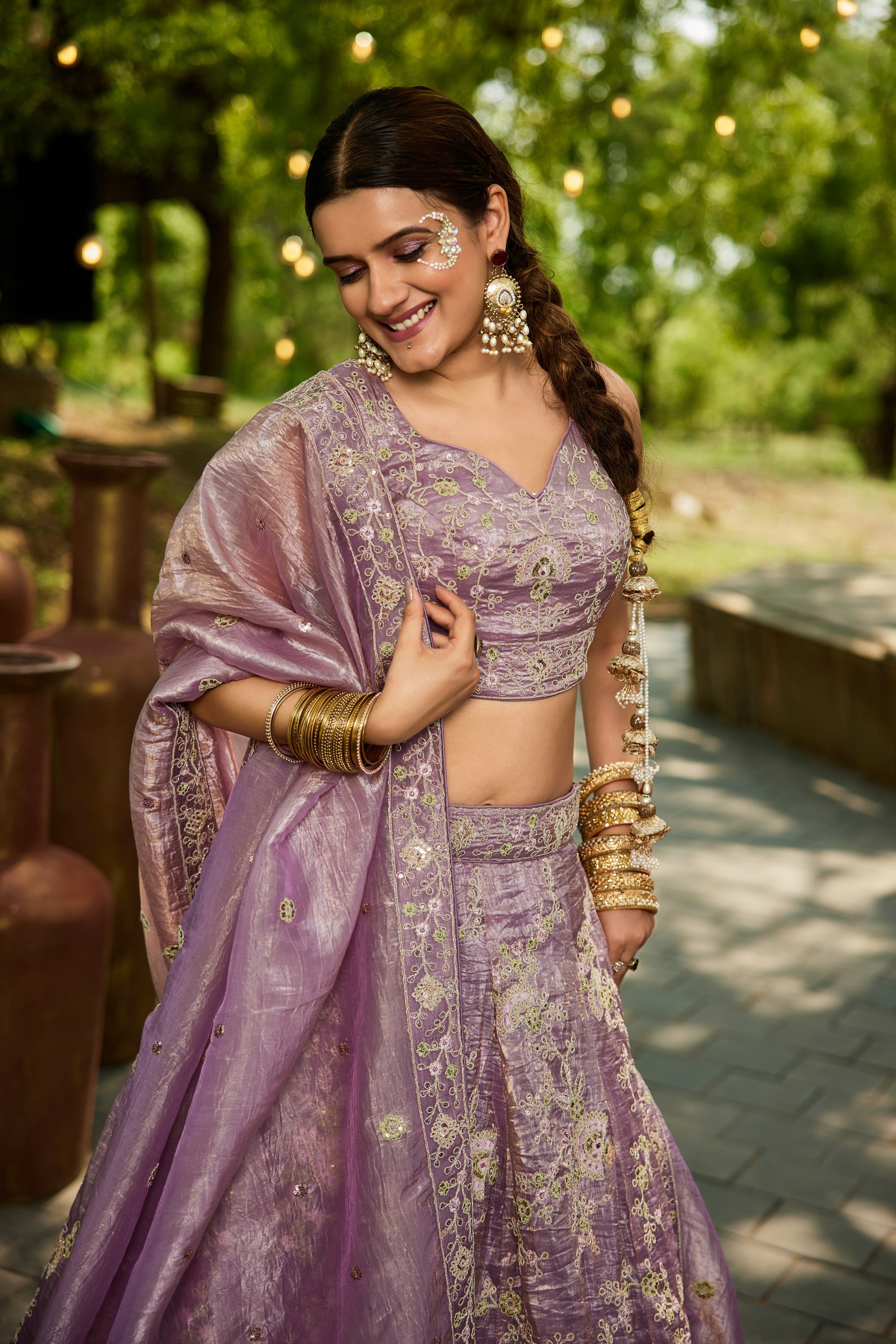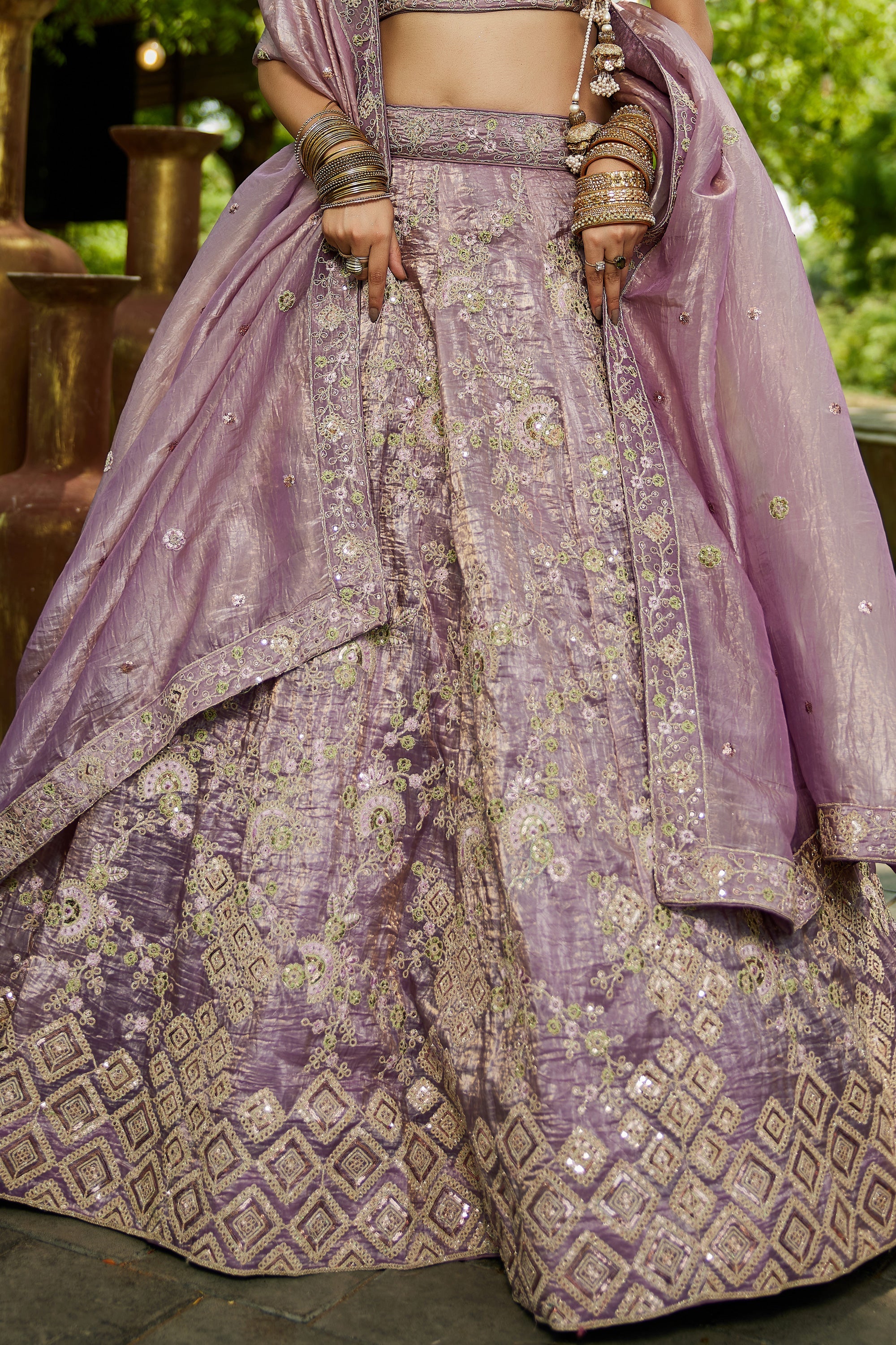 Lavender Designer Bridal Lehenga Choli With Sequins Embroidered Tissue Fabric