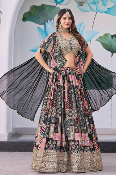 Glamour Embroidered Black Color Chinon Lehenga Choli
