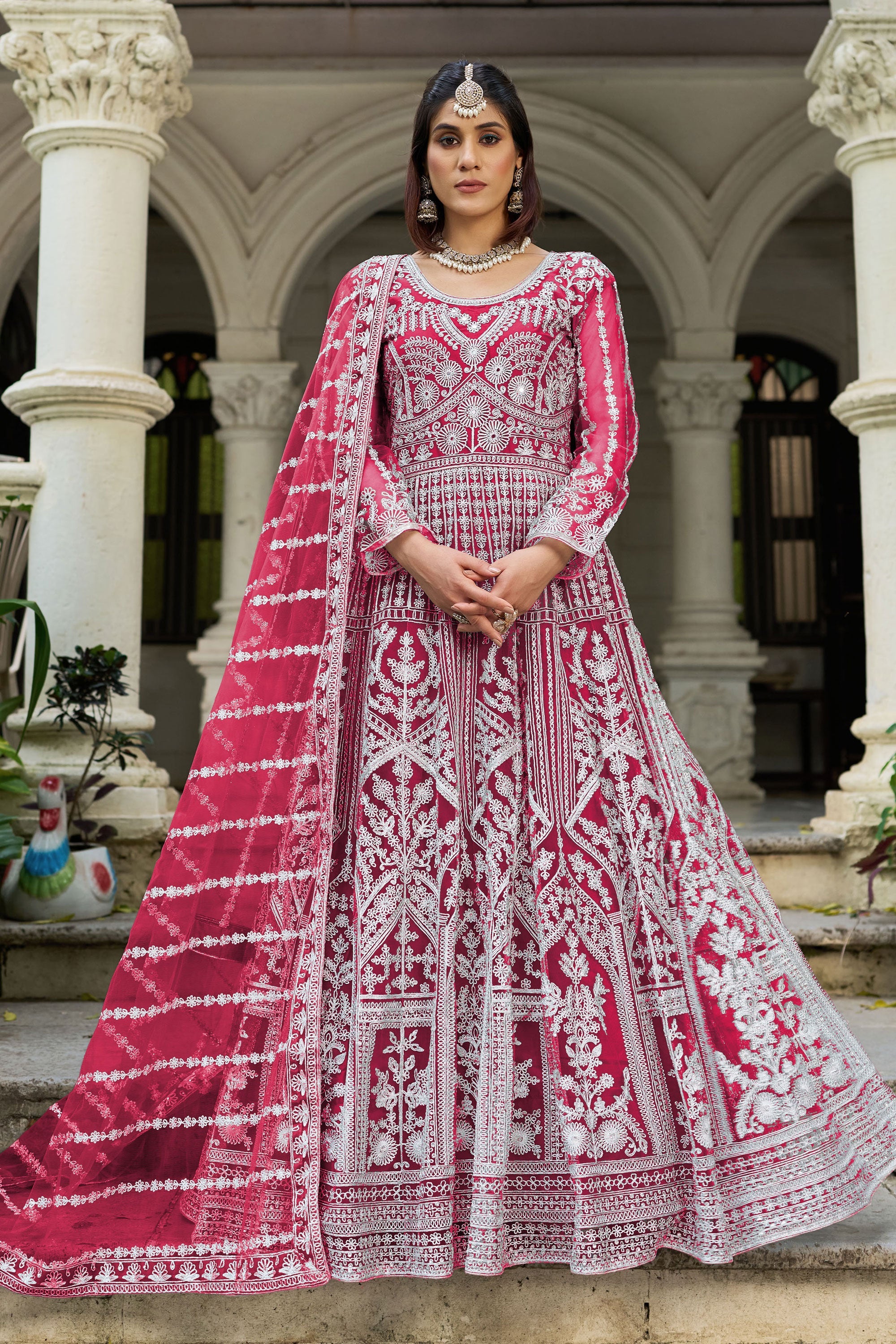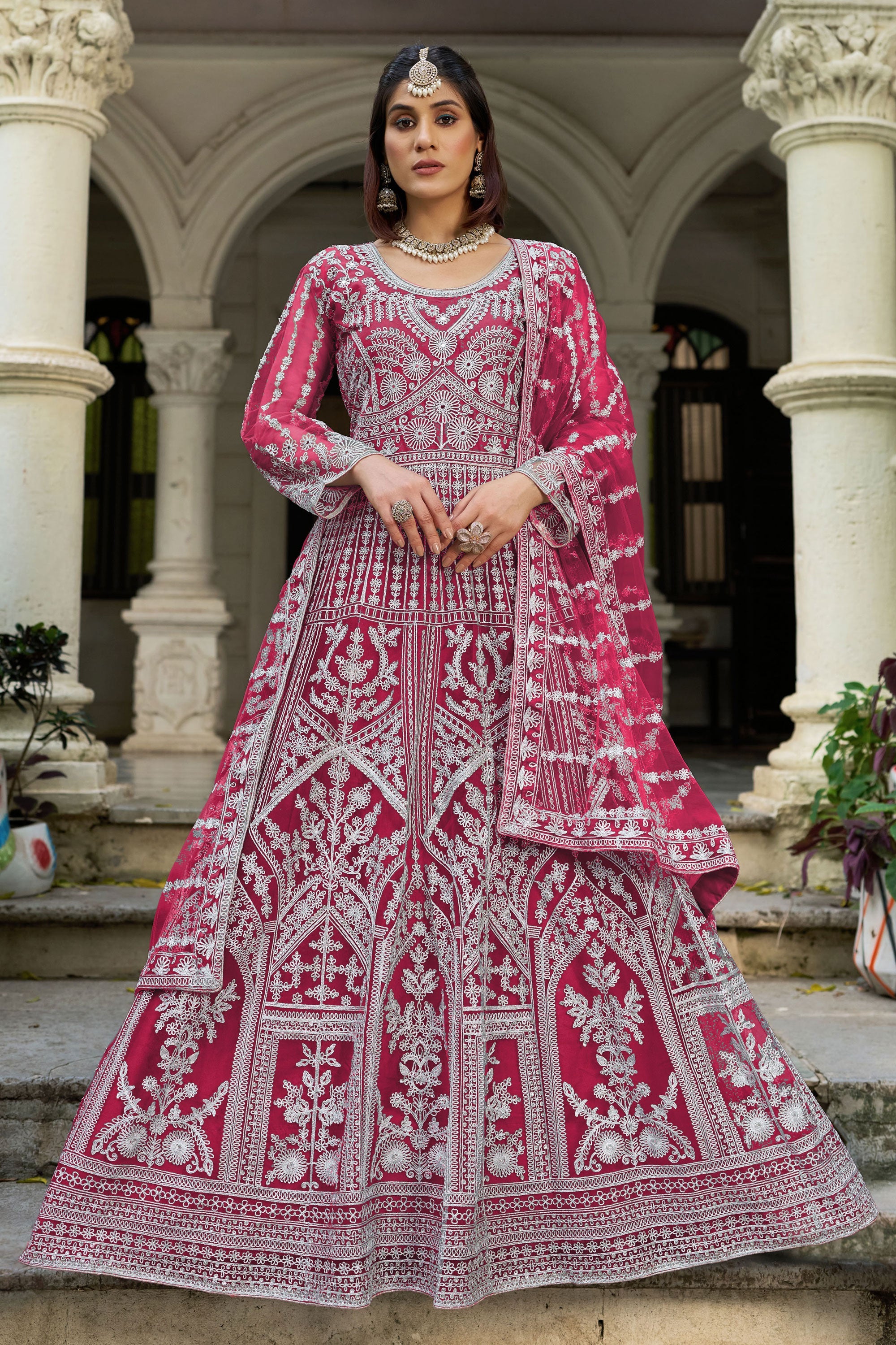 Turn heads at your next special occasion with this stunning Net Embroidered Readymade Anarkali Suit. Perfect for function wear, this elegant outfit features intricate embroidery work on high-quality net fabric that exudes grace and sophistication. The flowing Anarkali design ensures a flattering fit for every body type, while its ready-to-wear convenience saves you precious time. Ideal for weddings, festive gatherings, or cultural celebrations, this suit pairs beautifully with your favorite accessories to complete your polished look. Make a stylish statement effortlessly!
