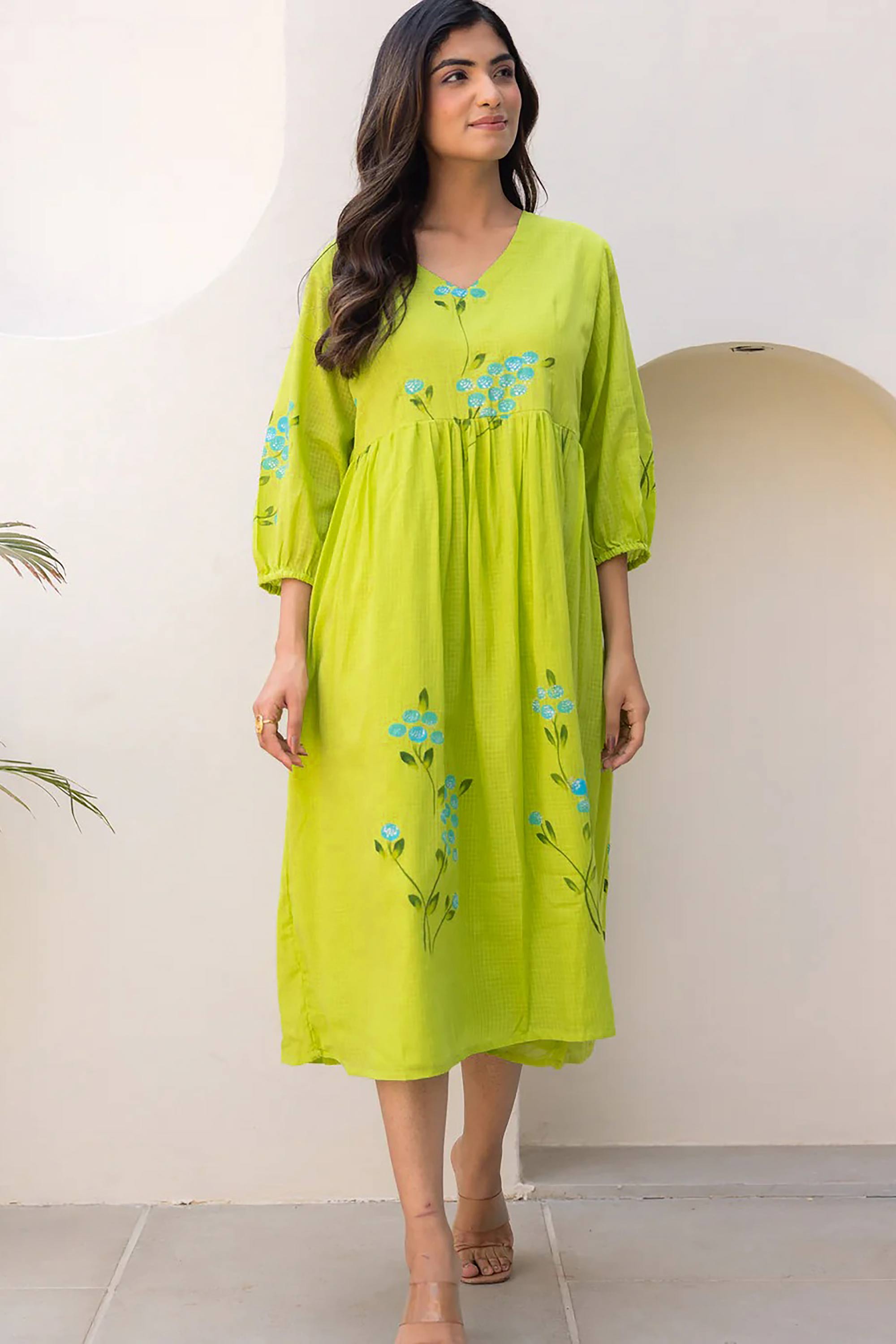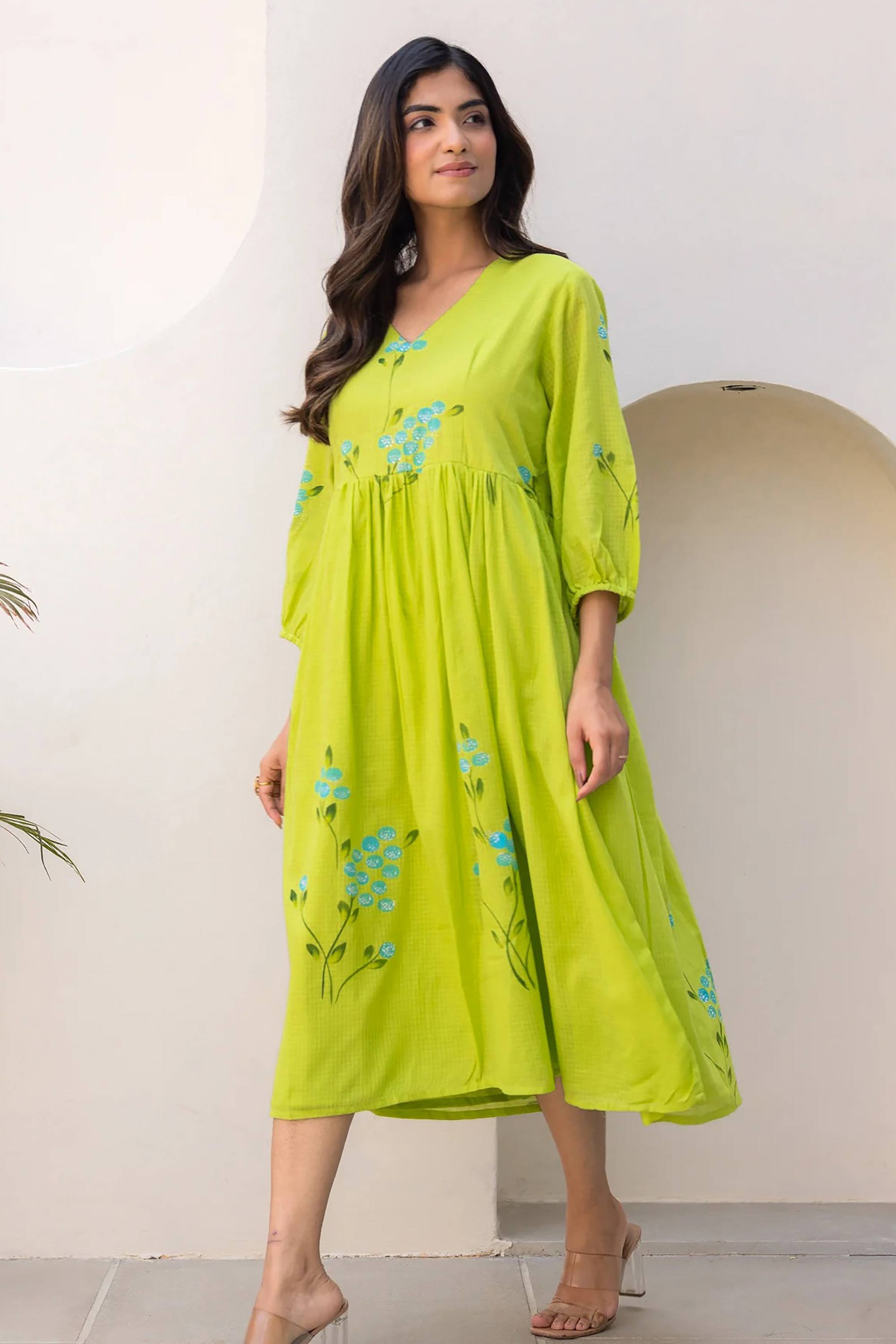 Women'S Floral Print Knee Length Fit And Flare A-Line Fancy Fabric Dress