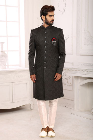 Adorning Black Color Brocade Fabric Indo Western For Men