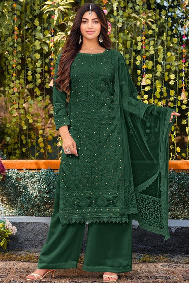 Akanksha Puri Fascinating Dark Green Color Georgette Fabric Palazzo Suit