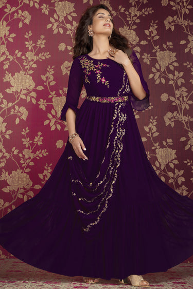 Albescent Purple Color Embroidered Readymade Party Style Gown