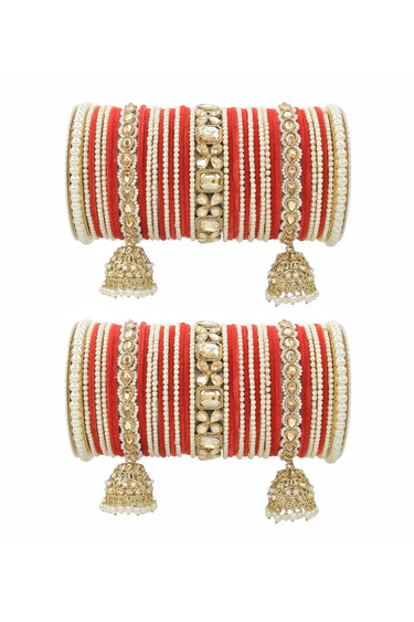 Alloy Material Red Color Tempting Jhumki Bridal Set With Pearl Kadas