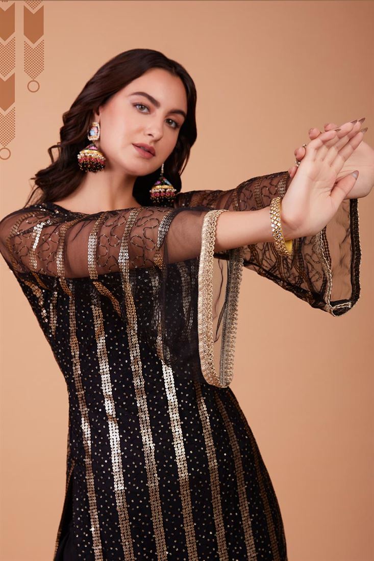 Alluring Net Fabric Black Color Function Style Salwar Suit