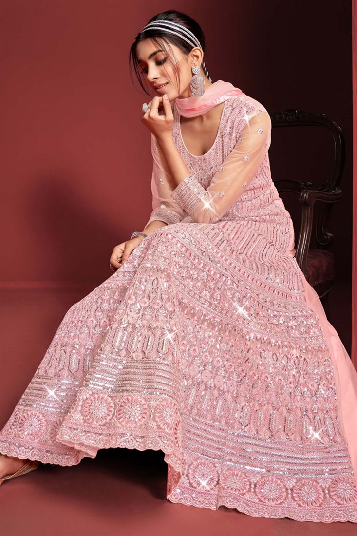 Alluring Net Fabric Pink Color Party Look Anarklai Suit