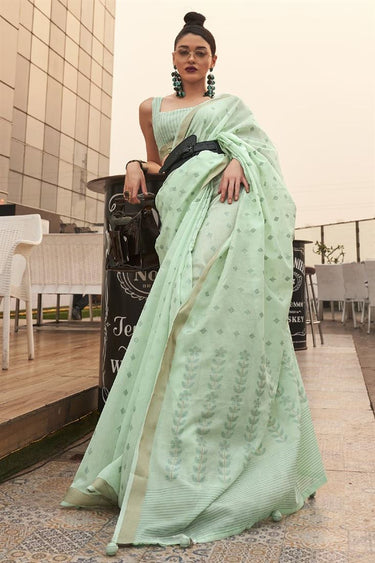 Alluring Sea Green Color Art Silk Fabric Party Style Saree