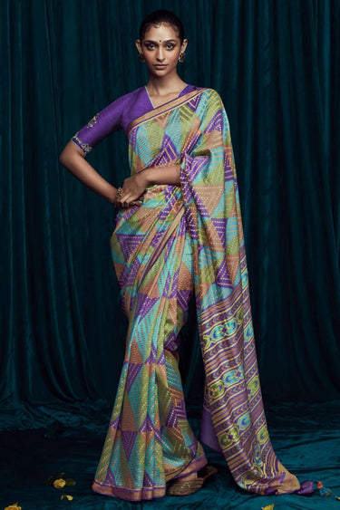 Amulet Multi Color Brasso Silk Printed Saree With Embroidered Blouse