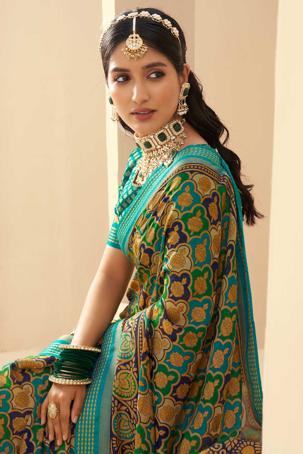 Wrap yourself in elegance with this exquisite Georgette Saree, designed to add a regal touch to your festive wardrobe. Crafted from premium Georgette fabric, this saree features intricate Jacquard work, exuding timeless charm with every fold. The matching Georgette blouse complements the saree perfectly, ensuring a seamless and sophisticated look.