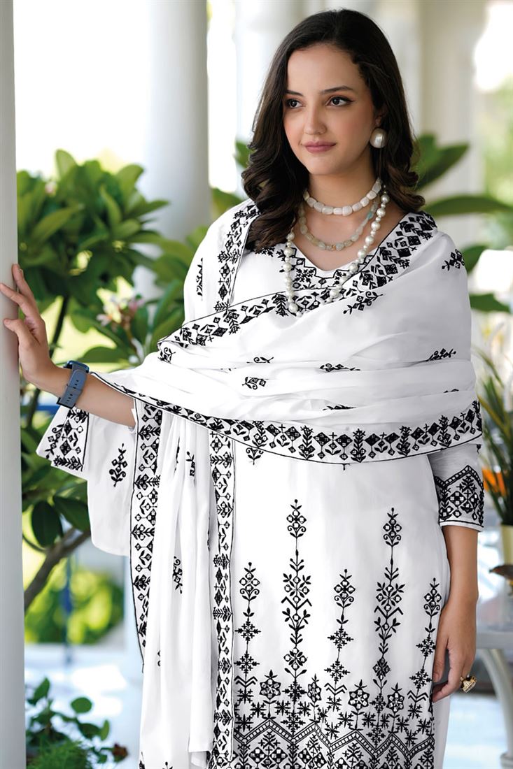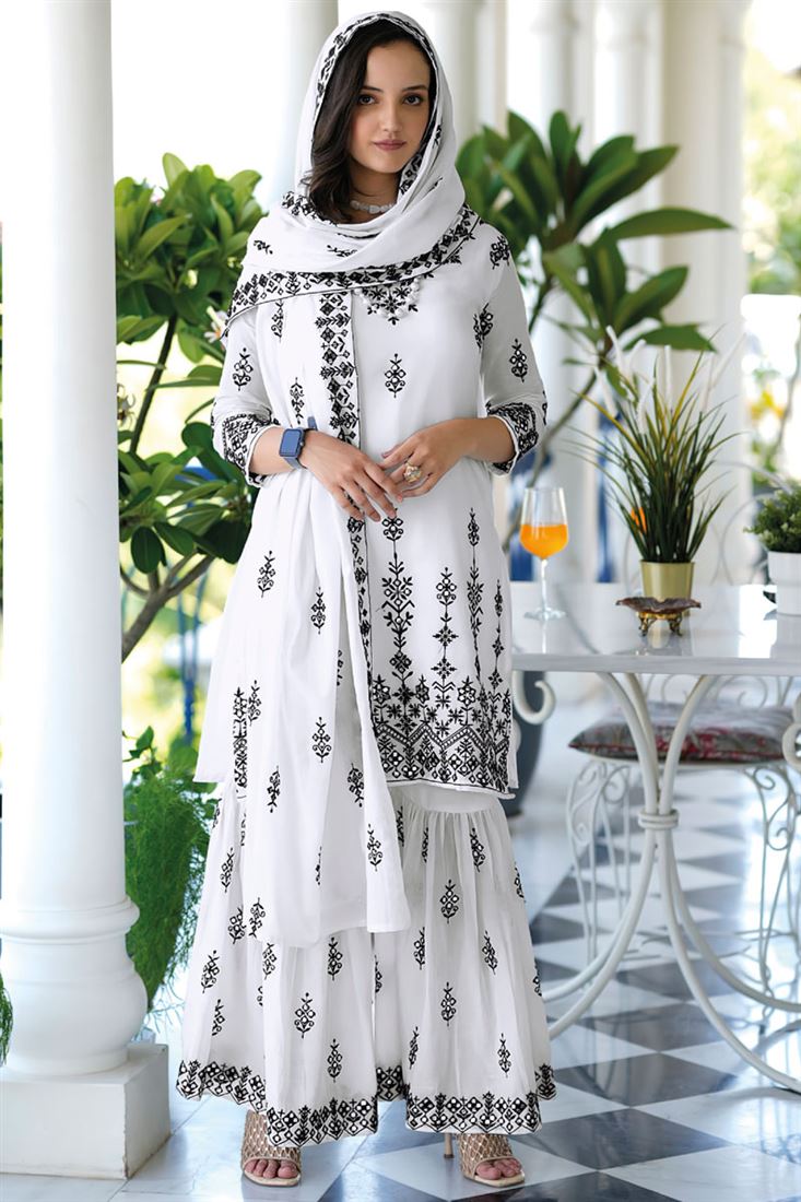 Appealing White Color Fancy Fabric Function Style Sharara Suit