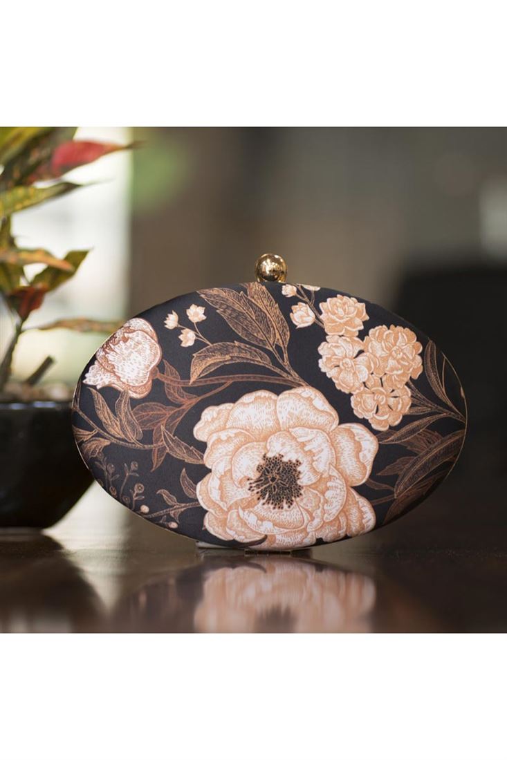 Art Silk Black Color Glorious Clutch With Digital Printed