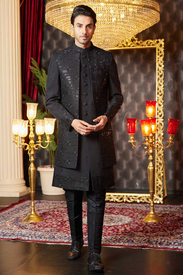 Art Silk Black Royal 3 Piece Indo Western For Wedding Wear