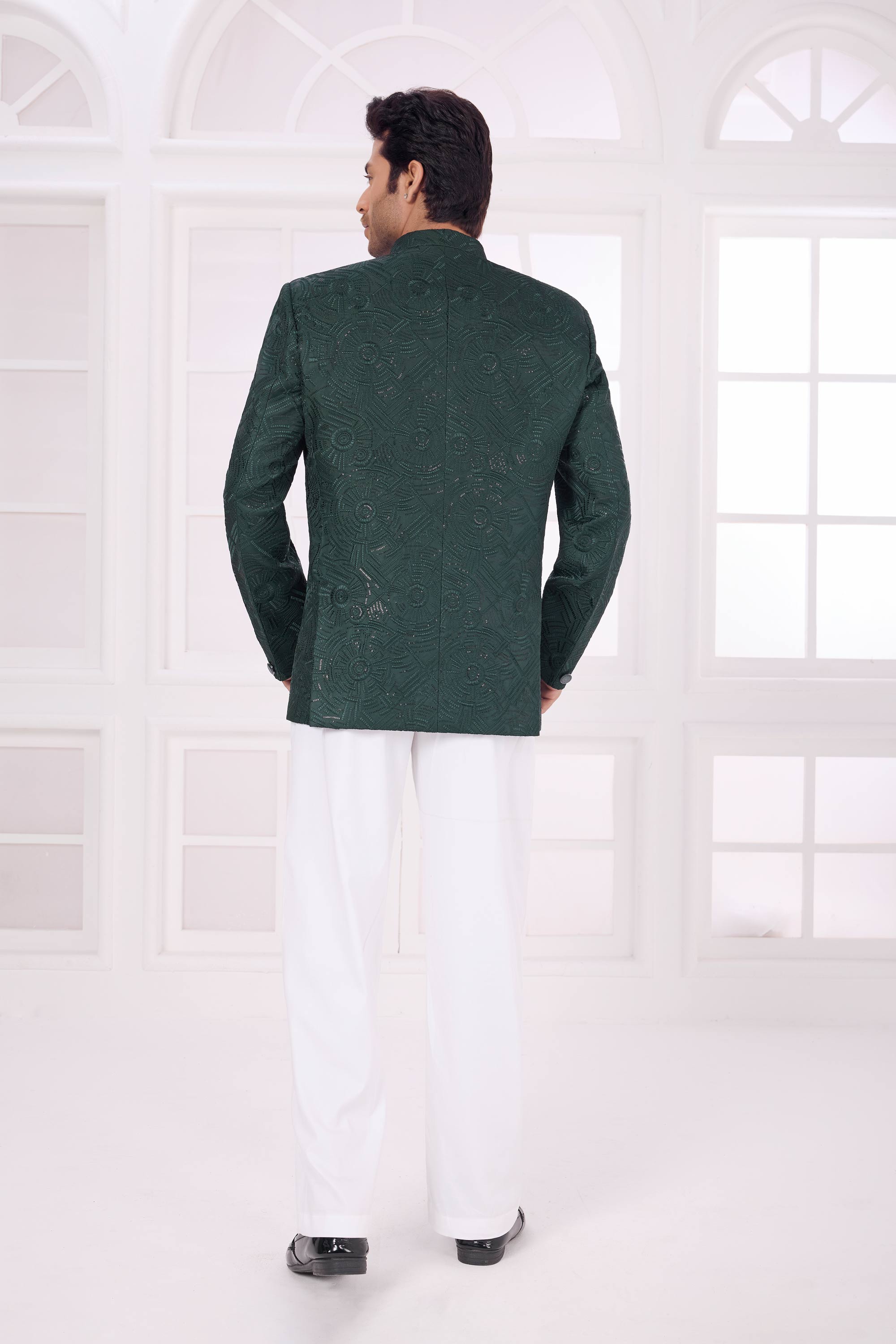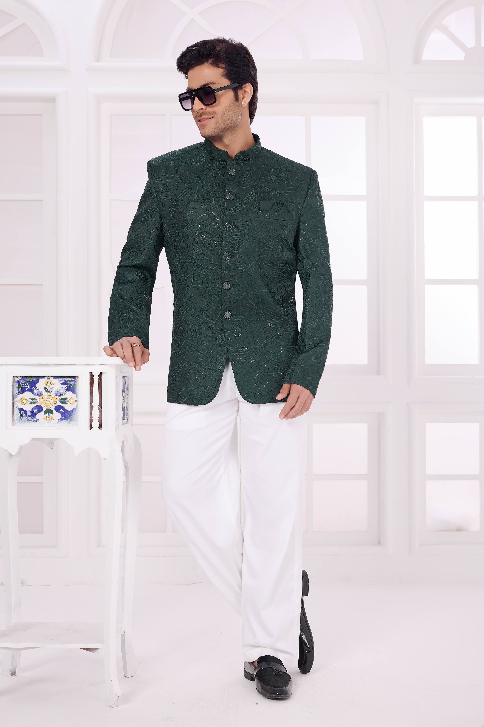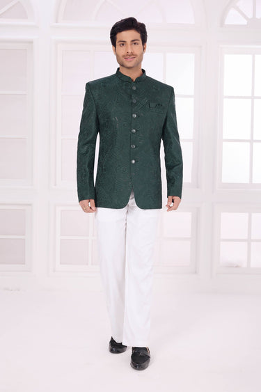 Art Silk Dark Green Readymade Jodhpuri Jacket For Wedding Wear