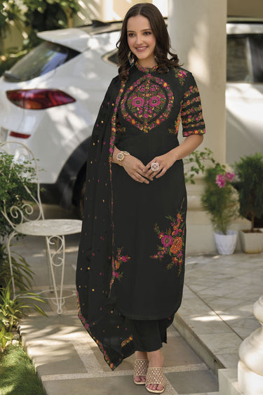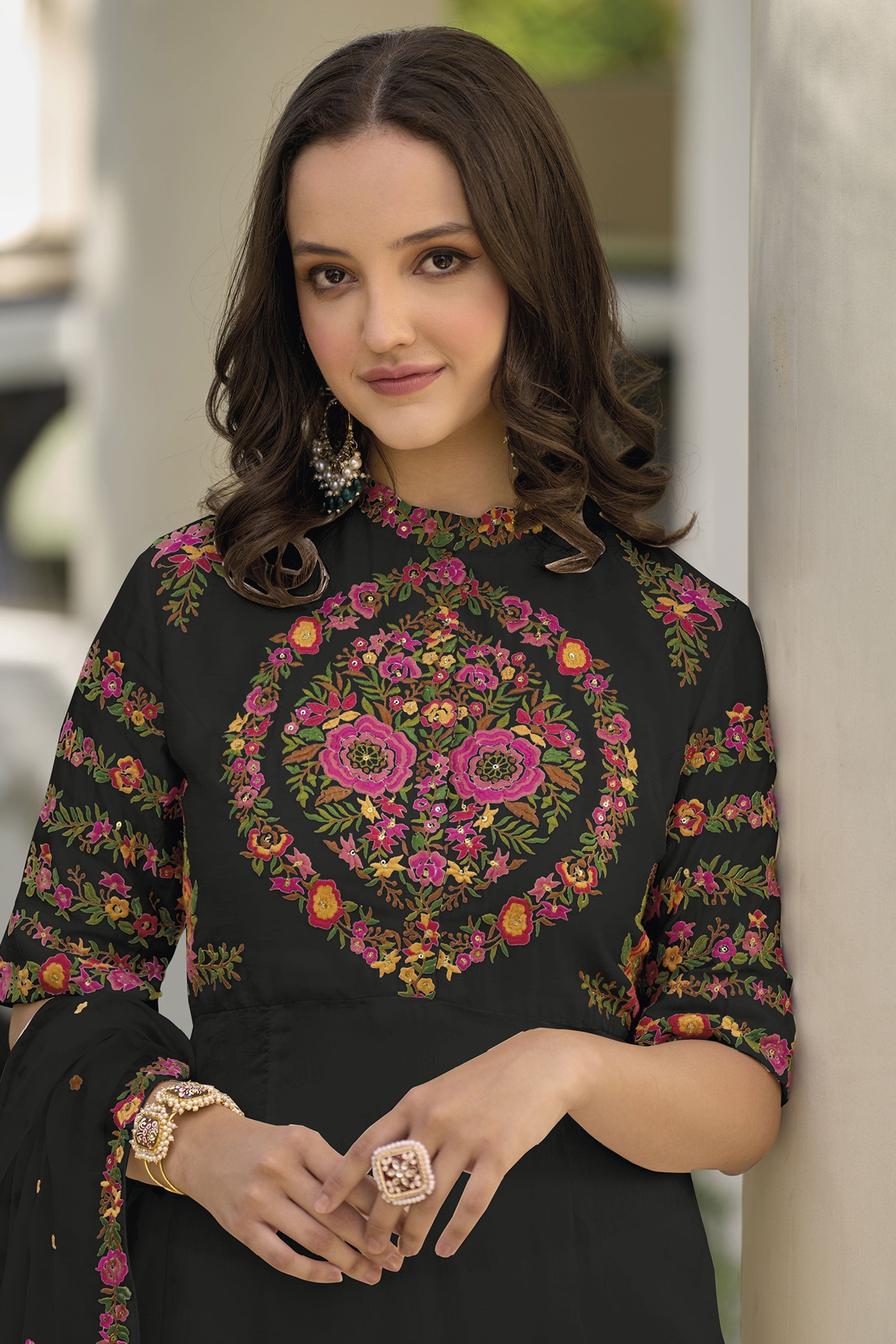 Art Silk Embroidered Function Wear Black Color Readymade Designer Salwar Kameez