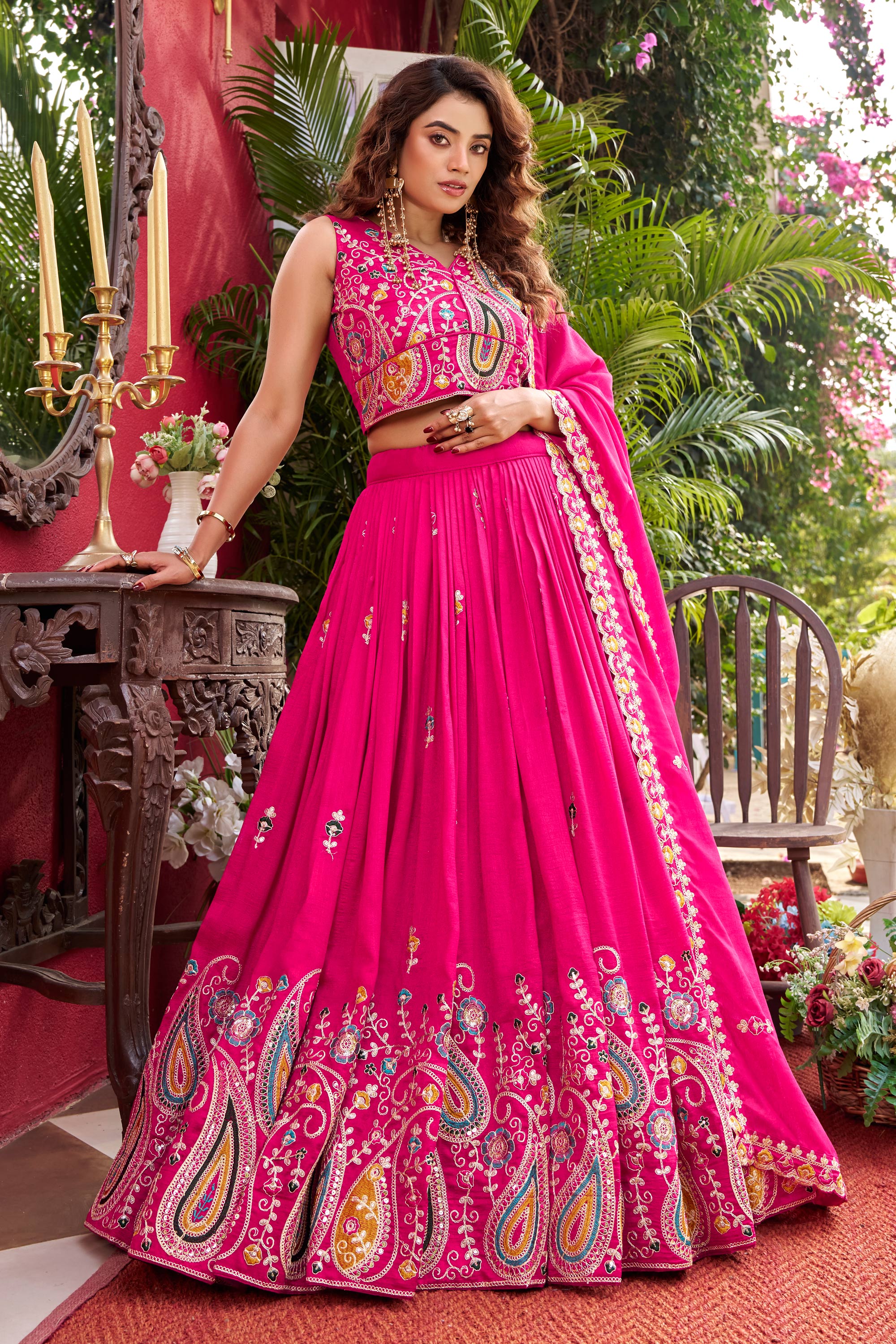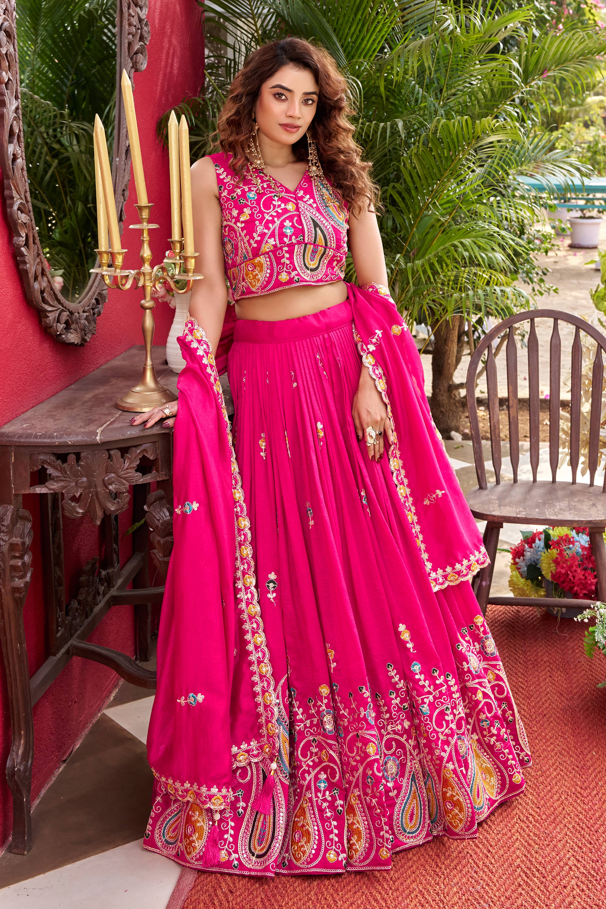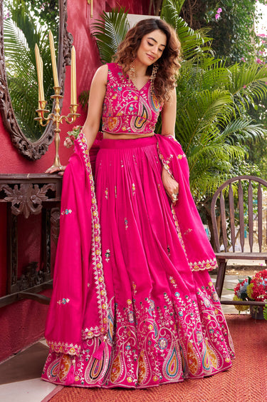 Art Silk Embroidered Pink Sangeet Wear Readymade Lehenga Choli