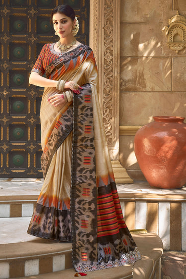 Art Silk Fabric Beige Color Excellent Saree With Border Work