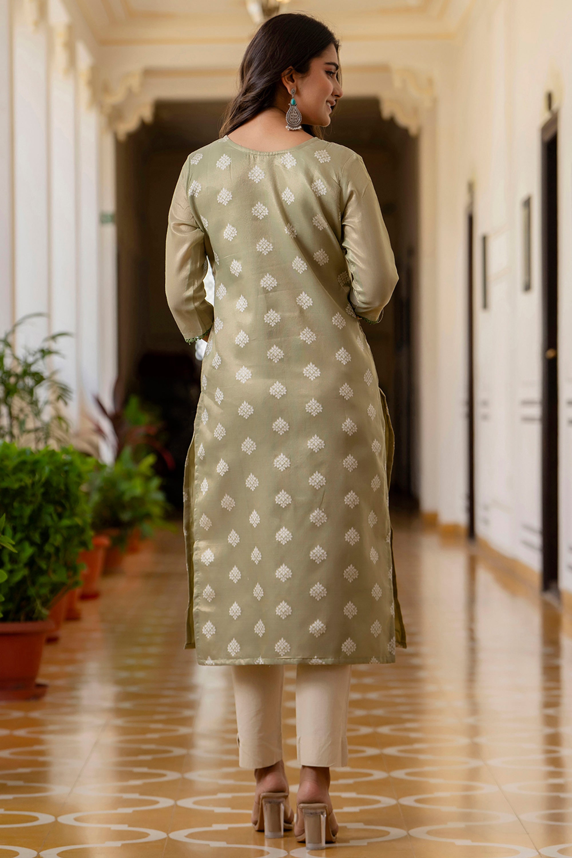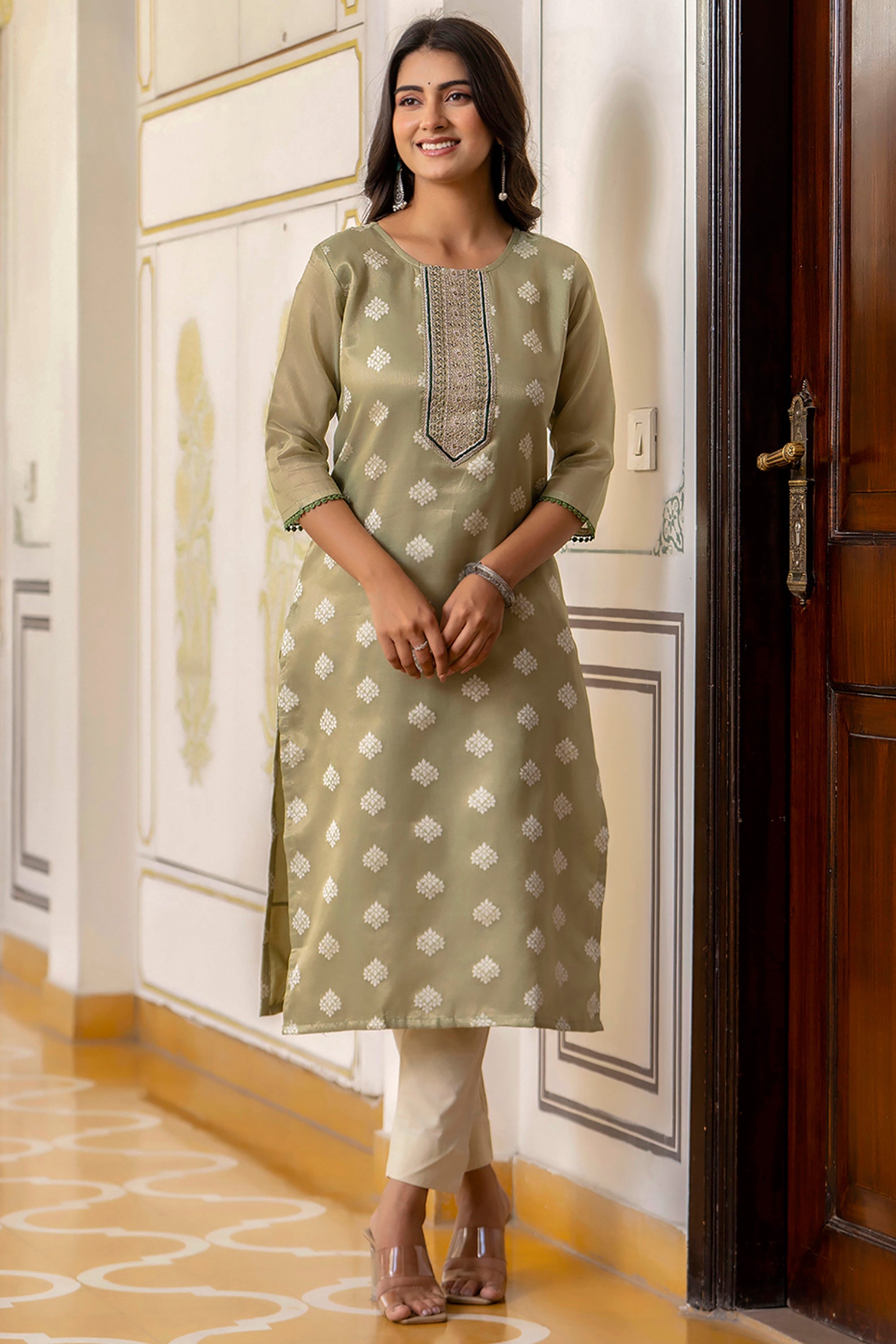 Art Silk Fabric Beige Color Readymade Long Kurti