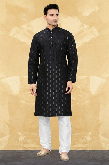 Art Silk Fabric Black Color Readymade Men Stylish Kurta