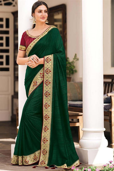 Art Silk Fabric Dark Green Color Festival Wear Imperial Saree With Border Work