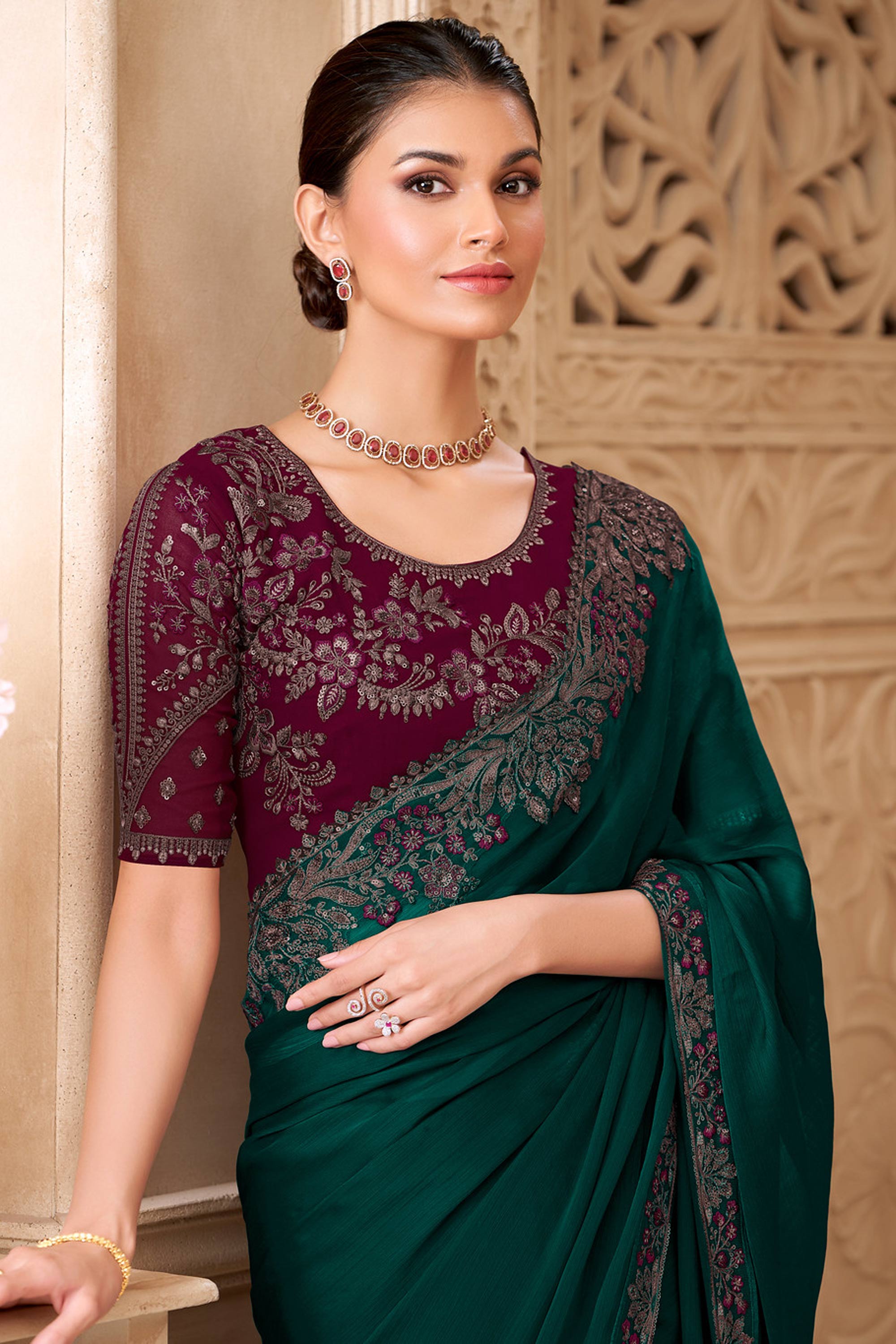 Art Silk Fabric Embroidered Dark Green Party Wear Saree