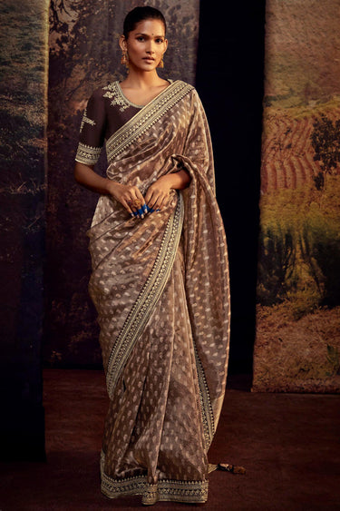Art Silk Fabric Fancy Work Rich Brown Color Festive Wear Saree
