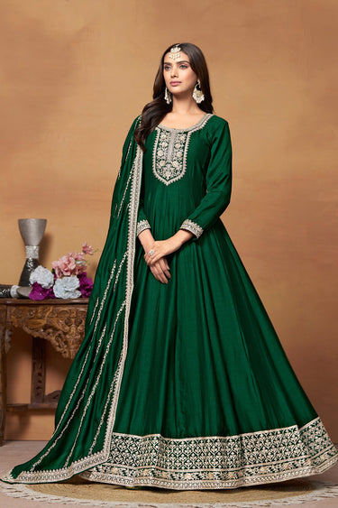 Art Silk Fabric Green Color Function Wear Elegant Anarkali Suit