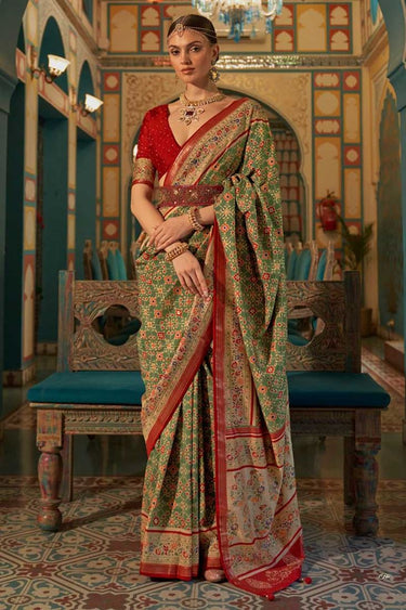 Art Silk Fabric Green Color Pleasing Patola Printed Saree