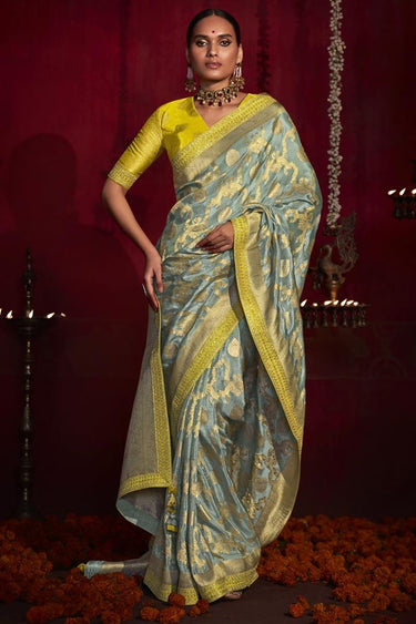 Art Silk Fabric Light Cyan Color Excellent Weaving Work Saree