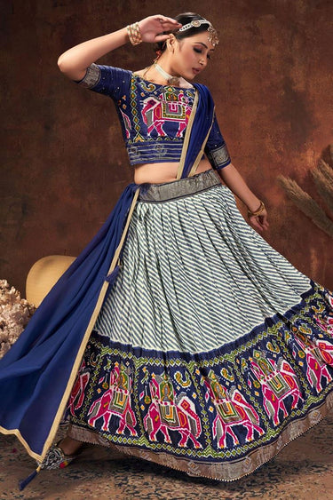 Art Silk Fabric Navy Blue Color Digital Patola Printed Work Sangeet Wear Traditional Lehenga