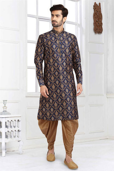 Art Silk Fabric Navy Blue Color Sangeet Wear Printed Kurta Pyjama