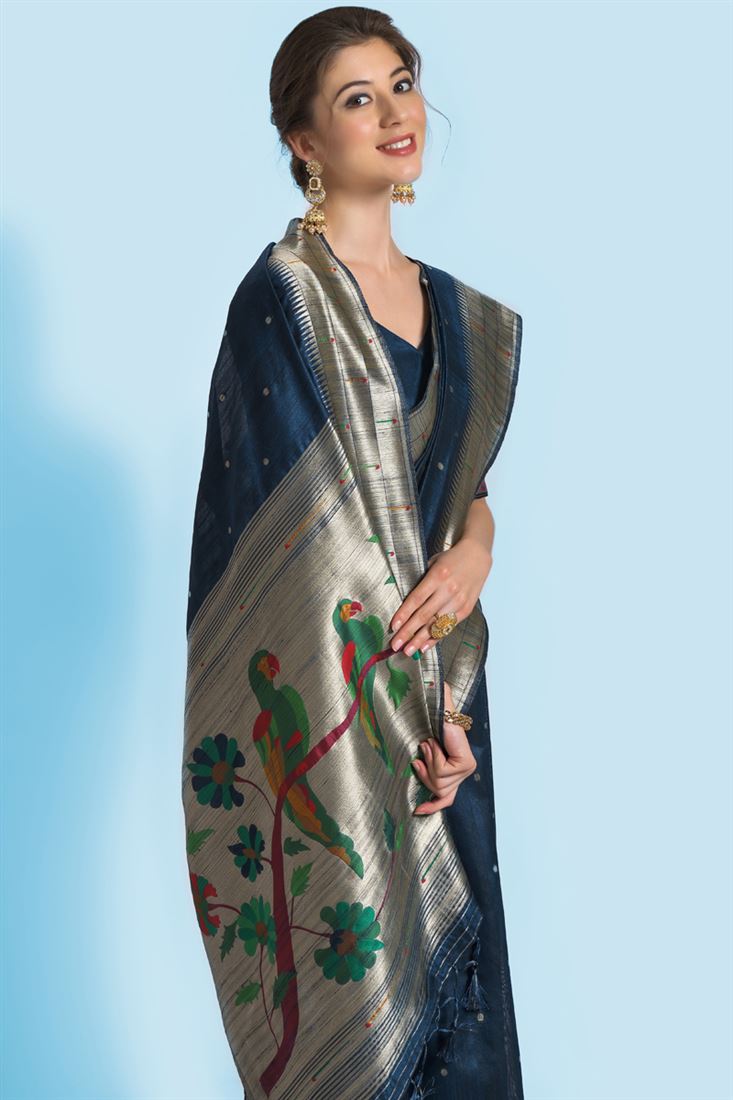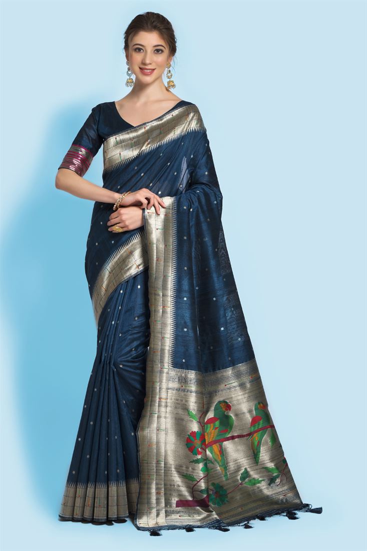Art Silk Fabric Navy Blue Color Weaving Work Winsome Saree