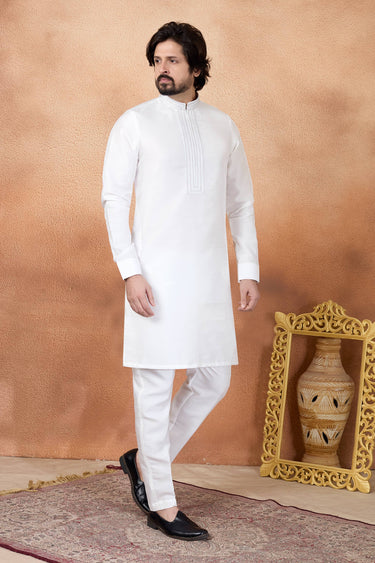 Art Silk Fabric Off White Men Readymade Kurta Pyjama For Function Wear